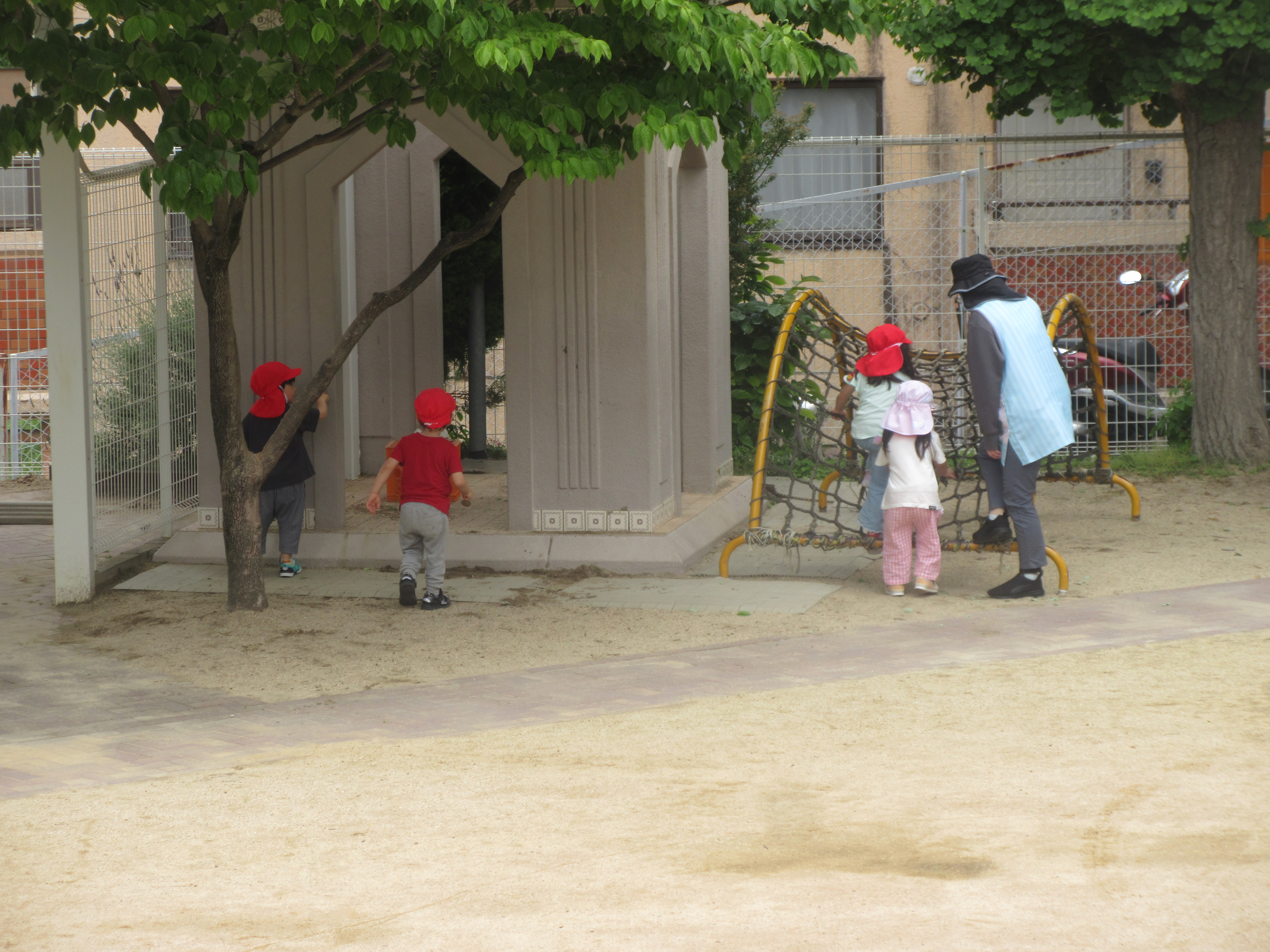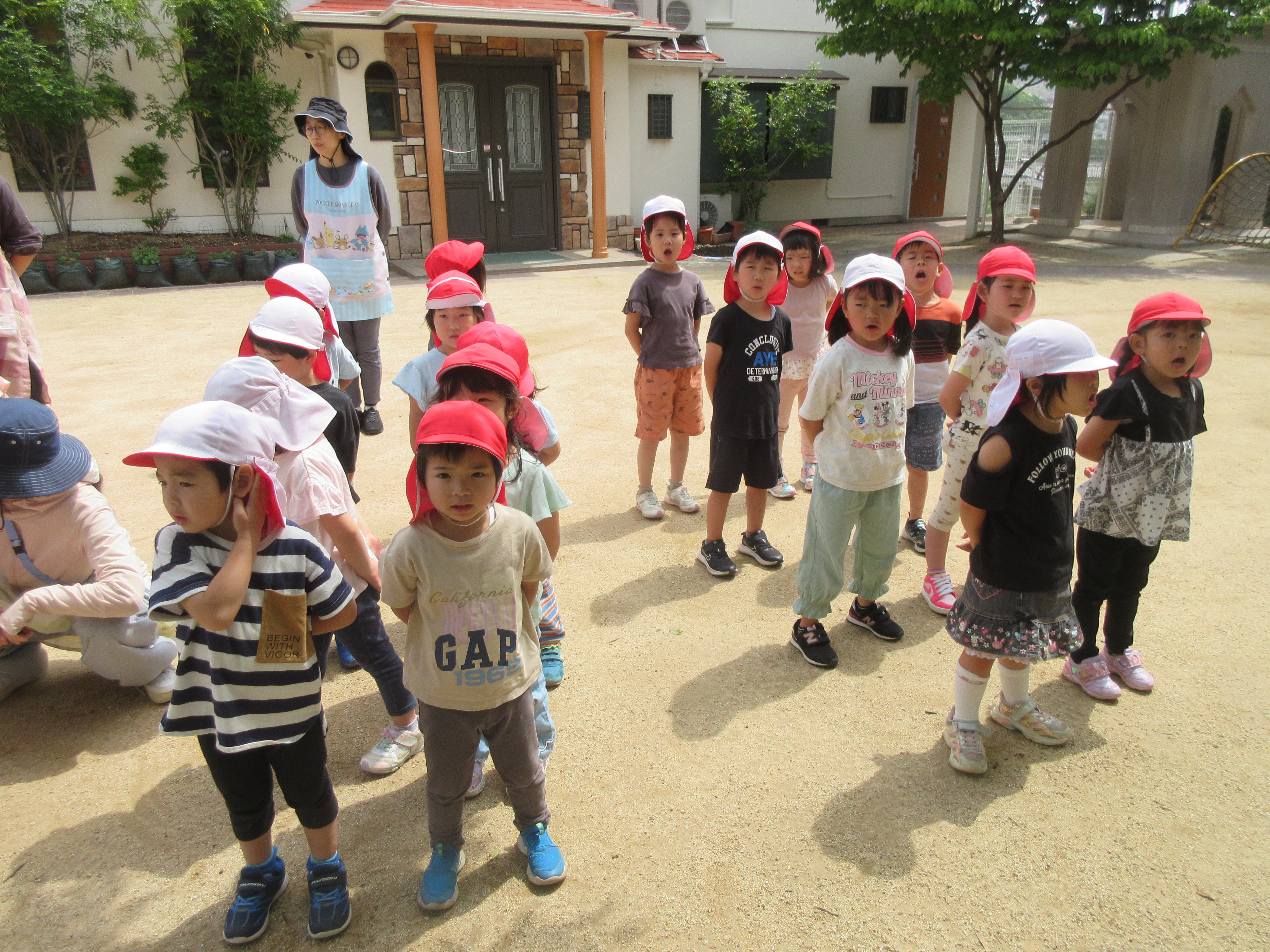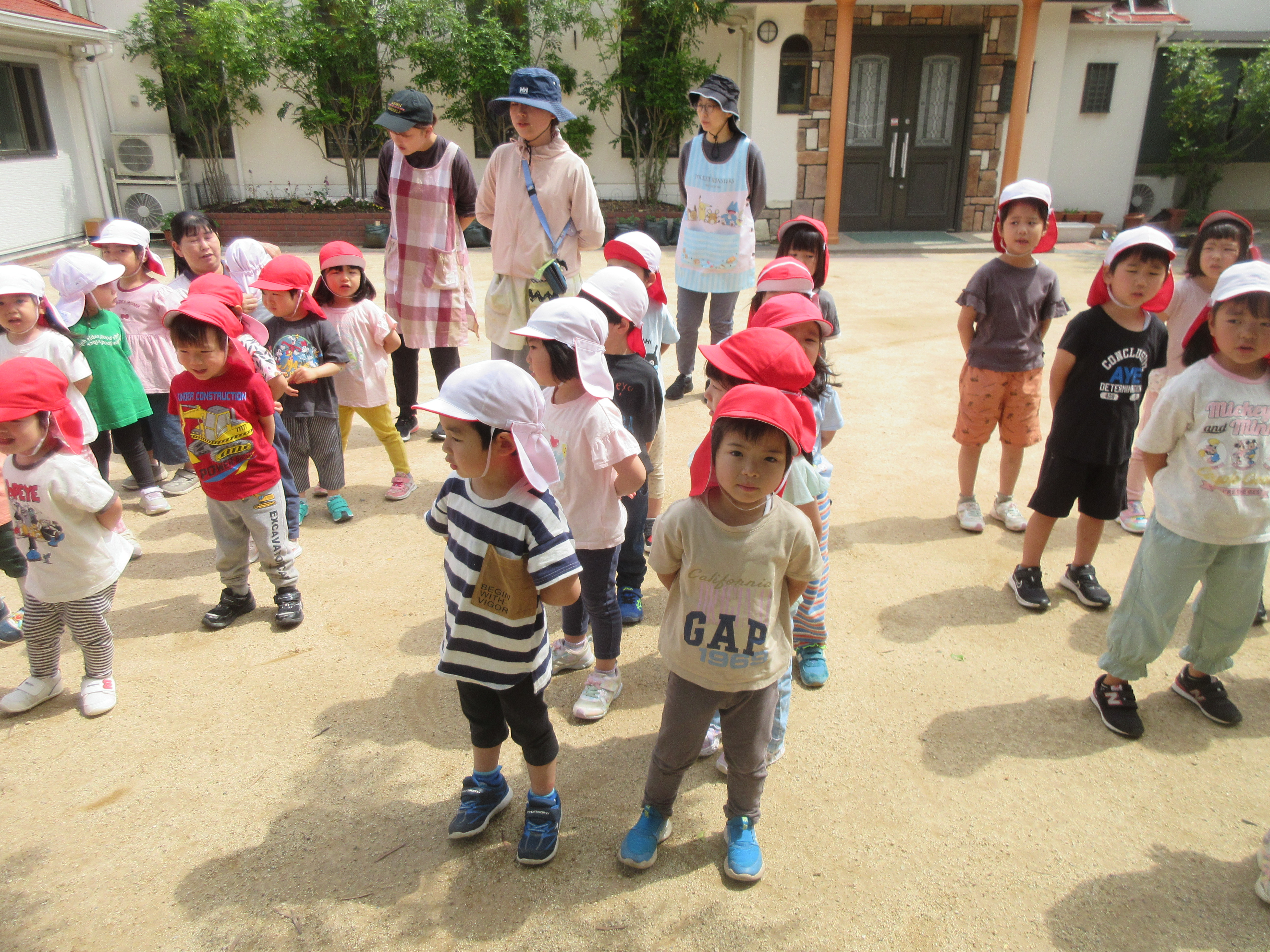 今日もお庭のお集まりをしました。その後は「1・2」の大きな声で行進の練習をしました!お隣のお友だちと列をそろえながら進むのに気を付けながらする子どもたちでした♡
