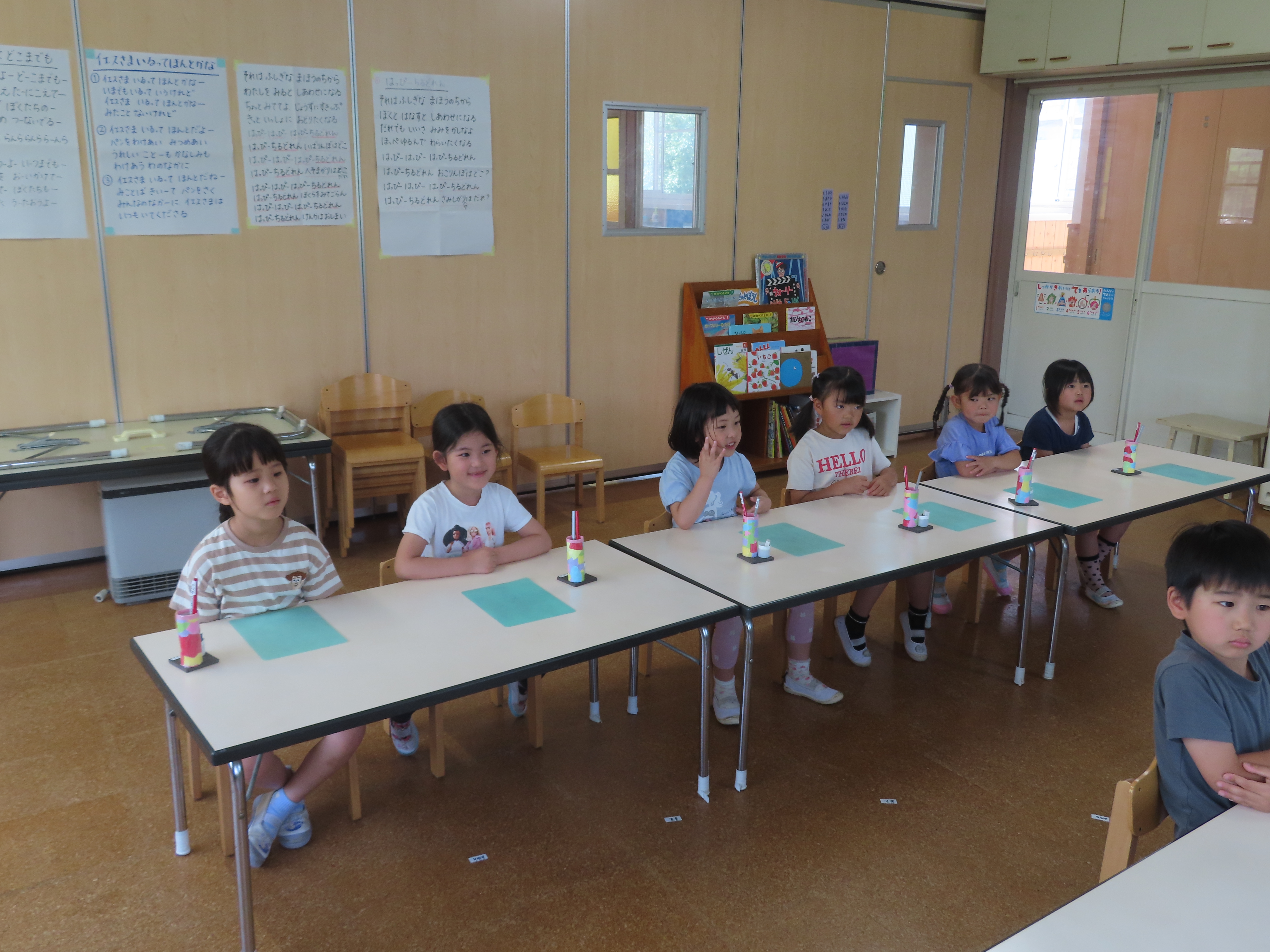 明日は、在園児は、英語あそびがあります。