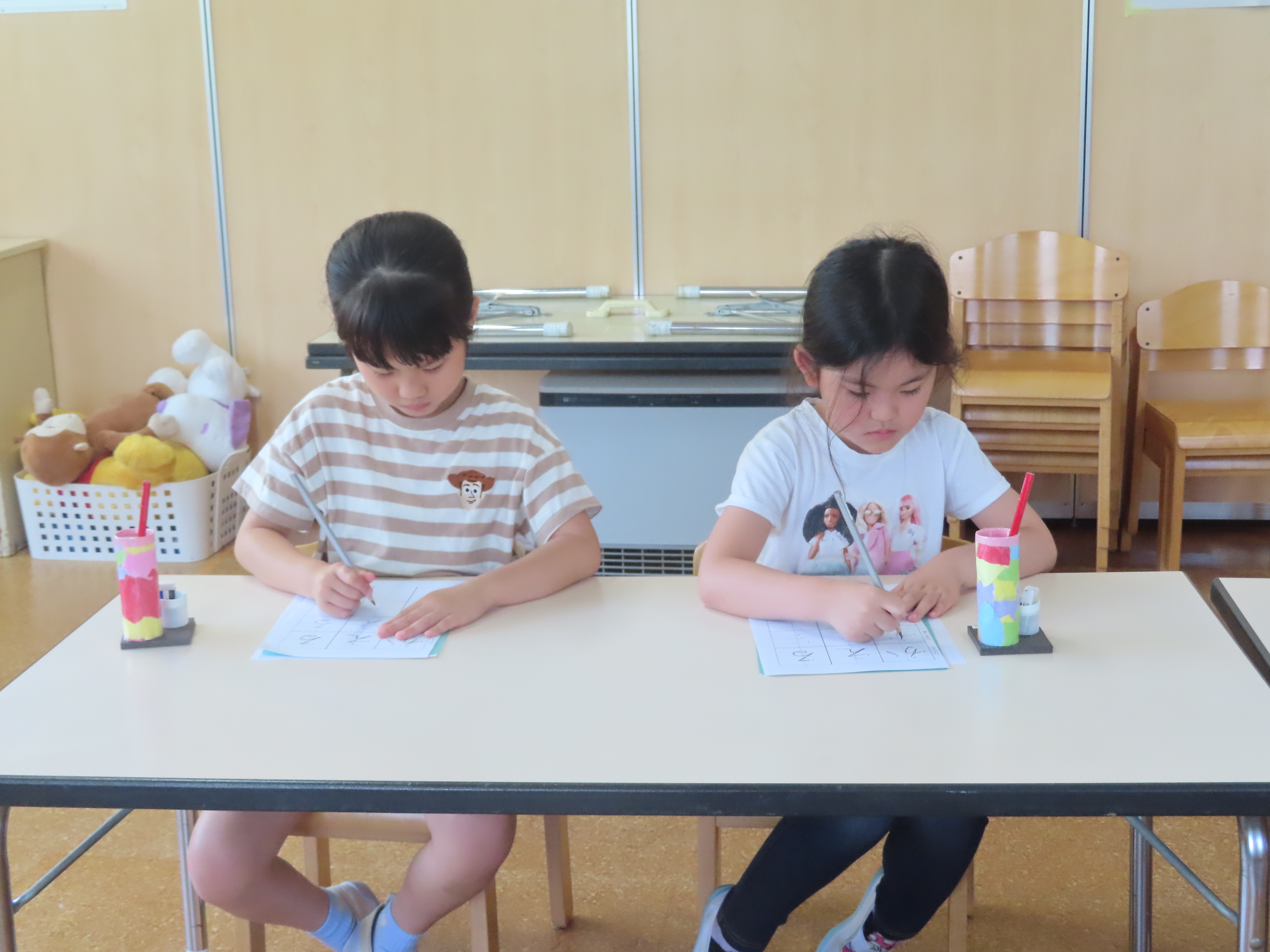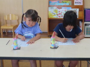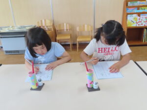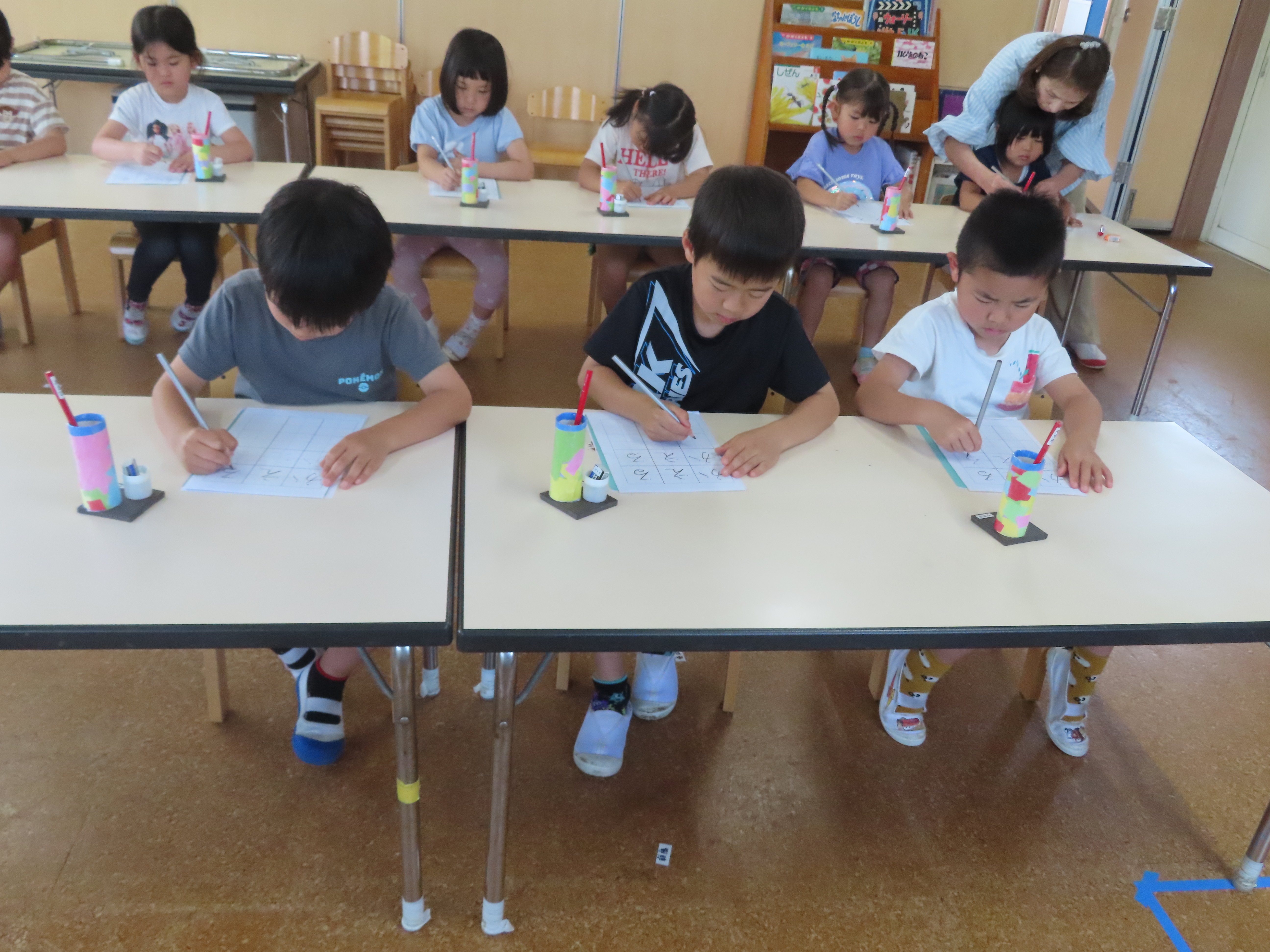 先生に、姿勢もよくて、よく書けてるよ!とお褒めのお言葉をもらって子どもたちも嬉しそうでした。