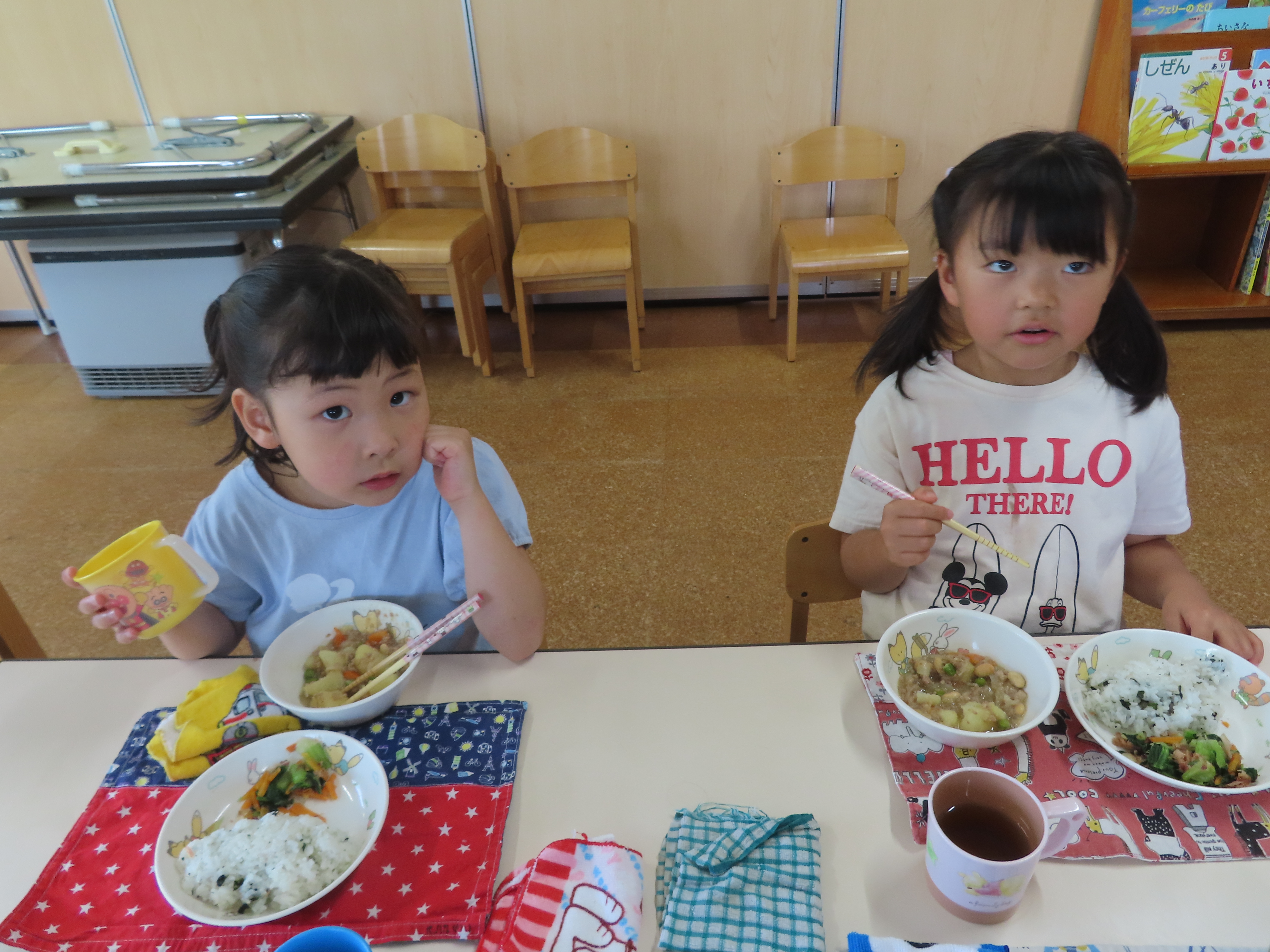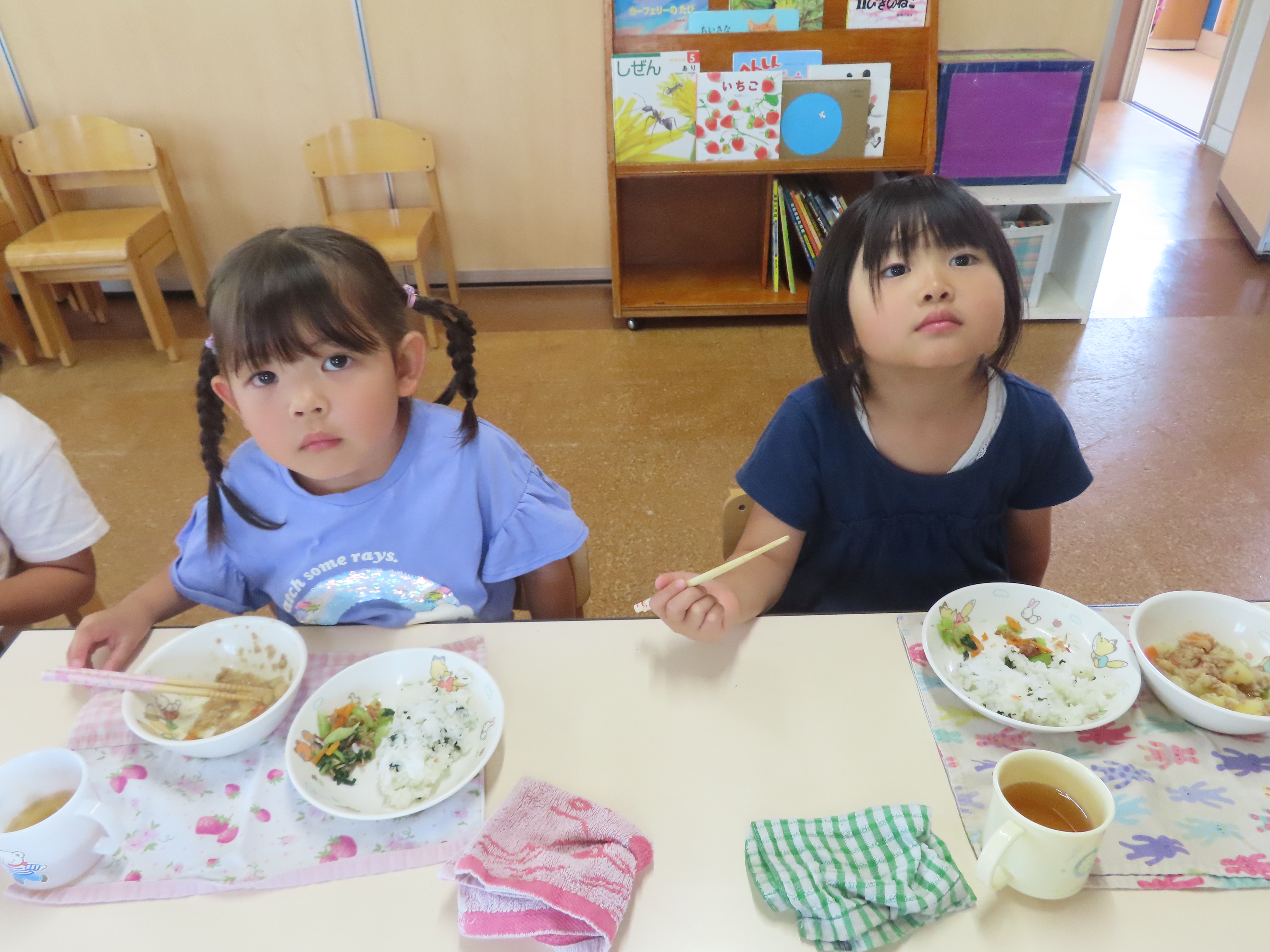 水筒のお茶は、たくさん入れて持たせてくださいね。