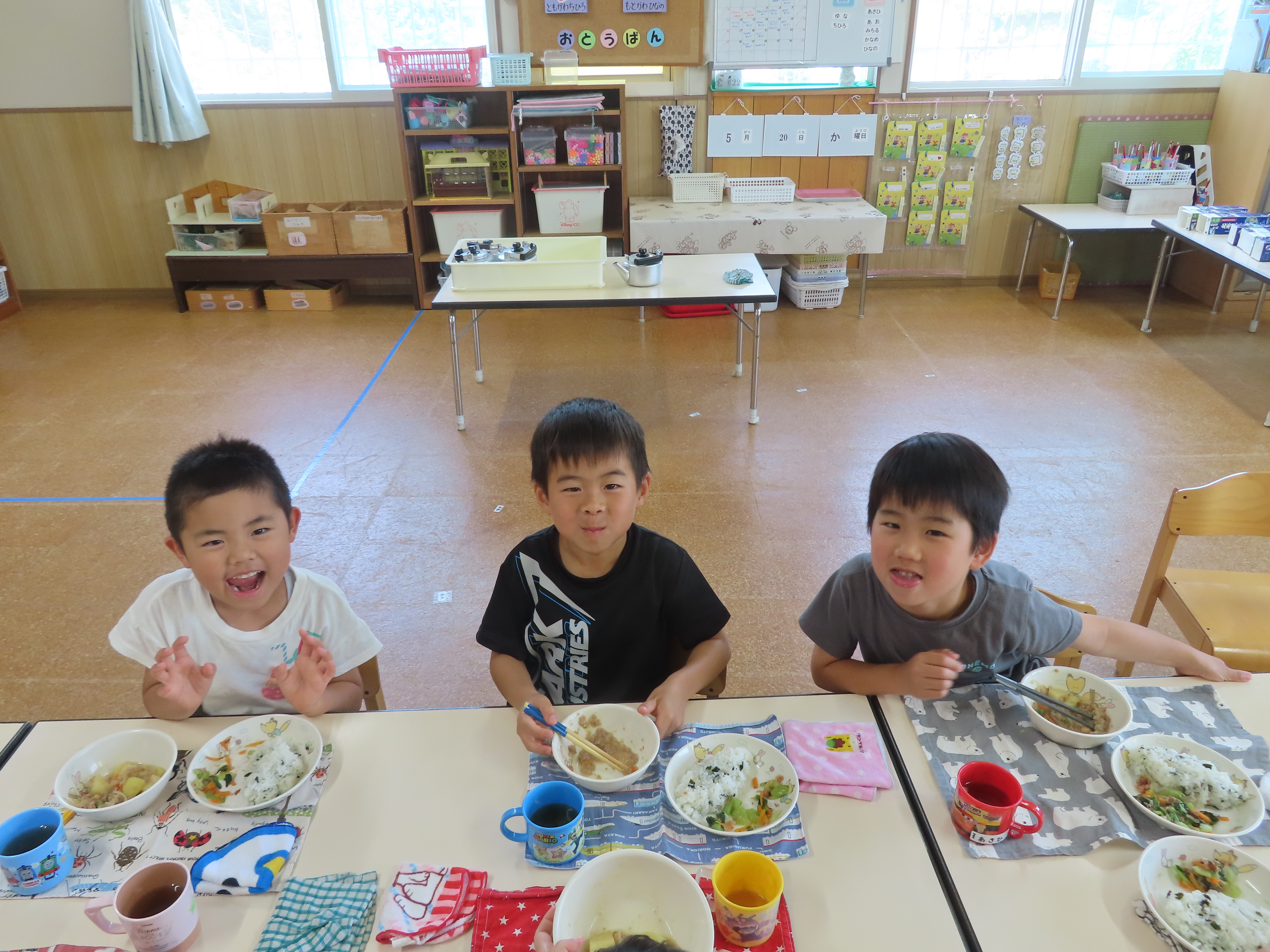 お外あそびも暑くなってくるので、水遊びがはじまるのが、待ち遠しい子どもたちです。