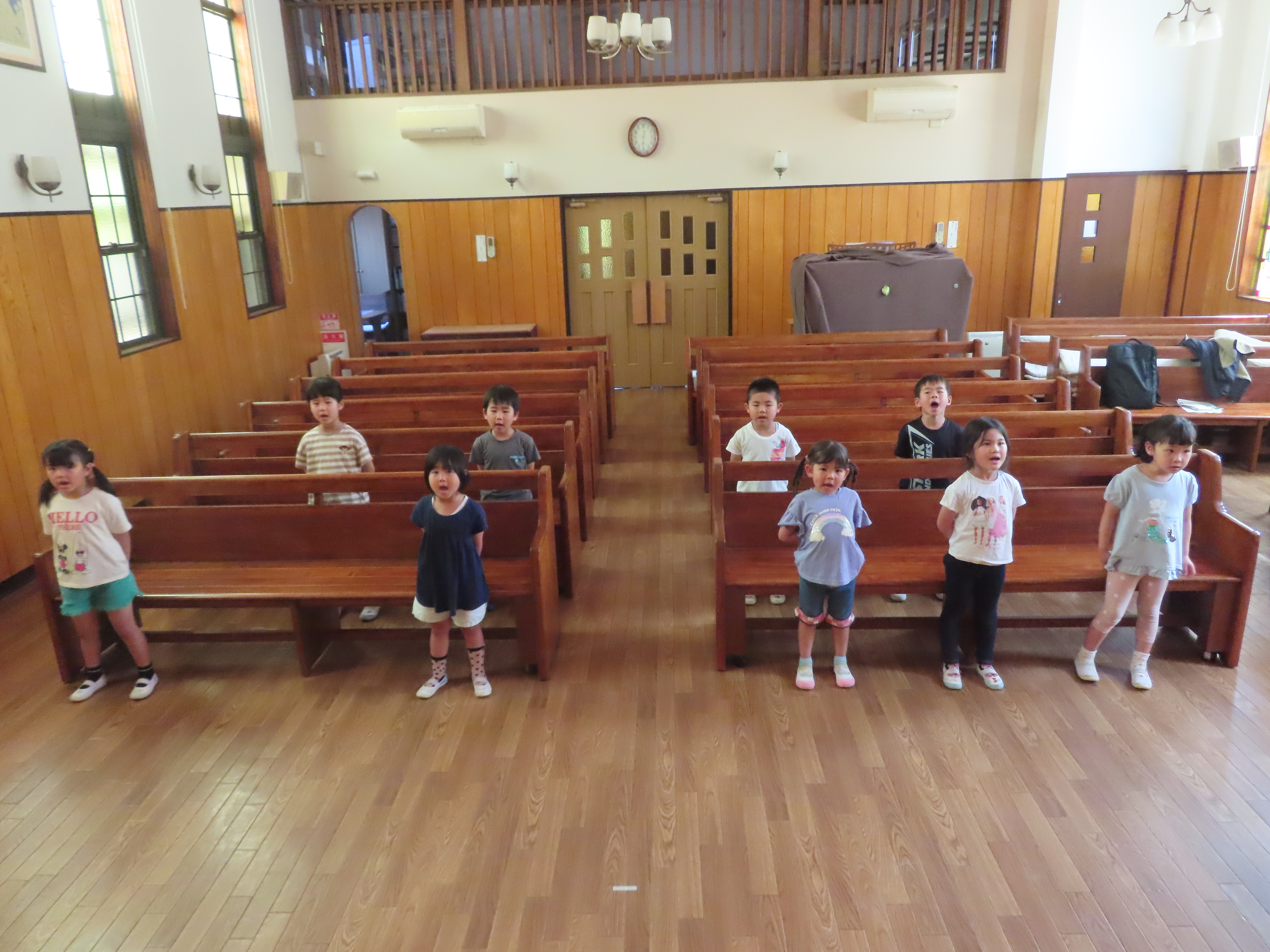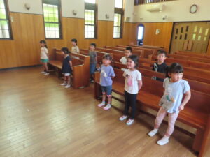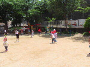 お歌や、お祈りの練習も頑張りました。1回で終わり、お待ちかねのお外あそびにいきました。