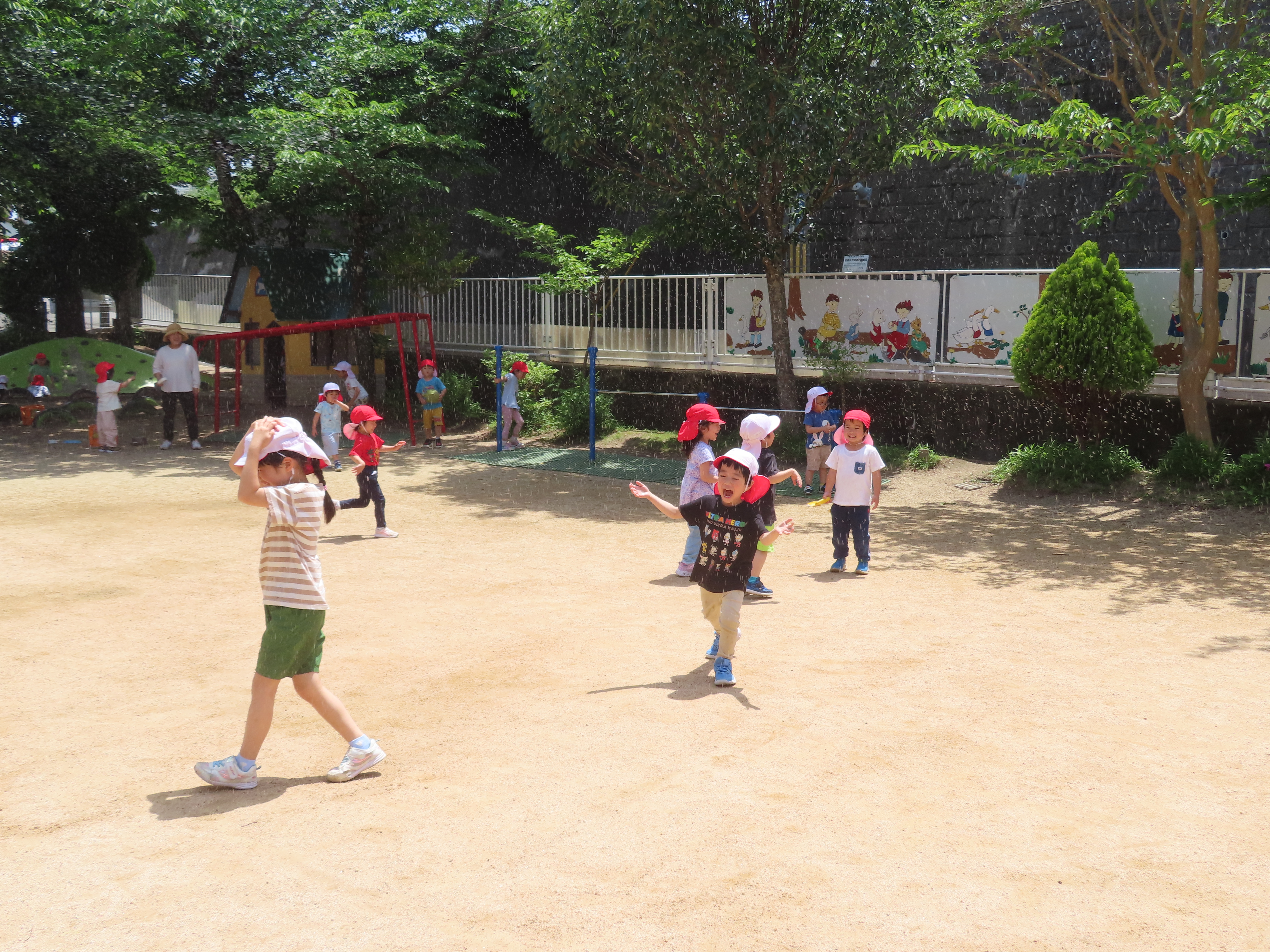 キャーキャー言いながら、水あそびを楽しみました。