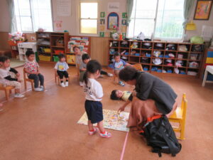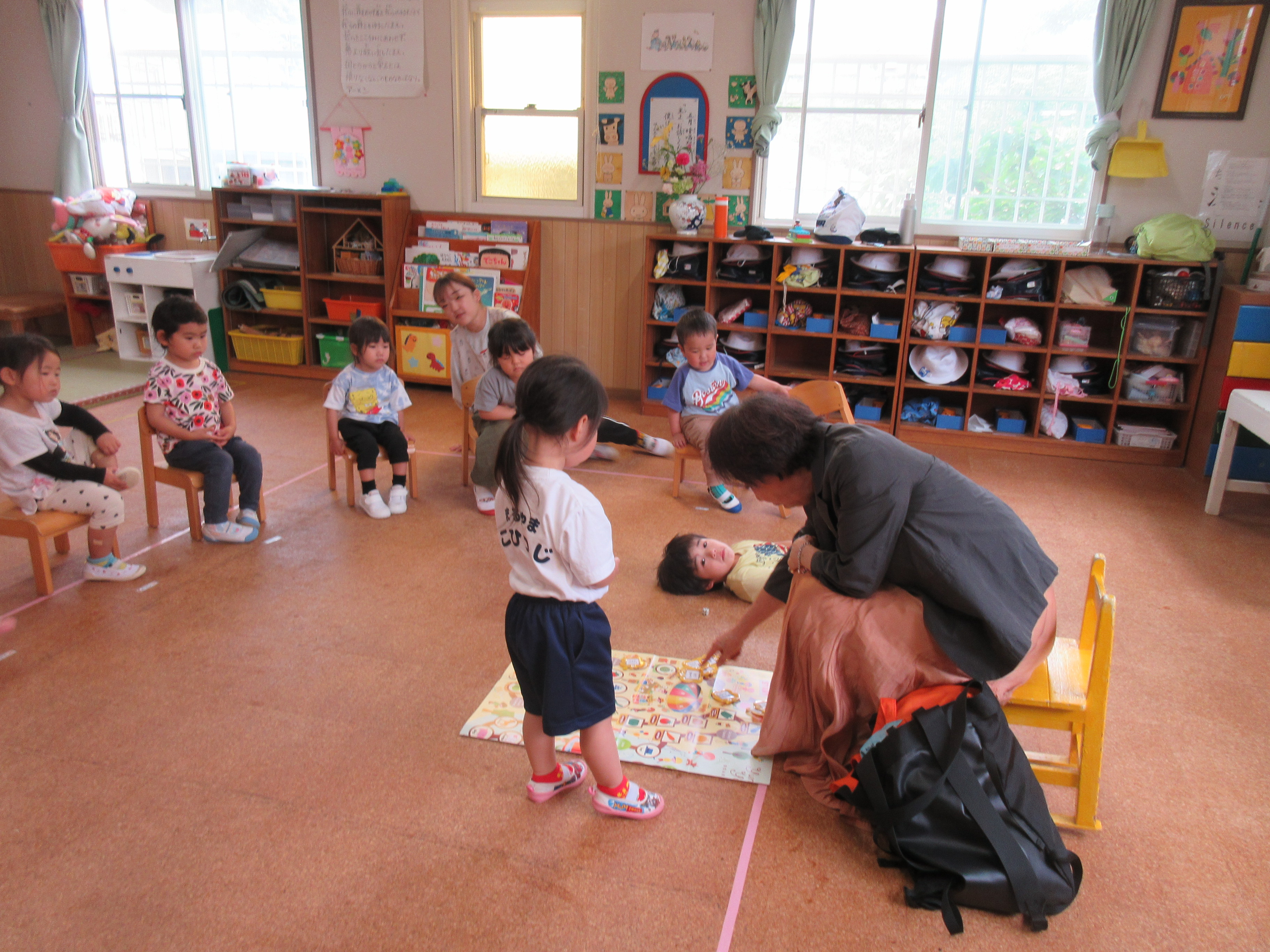 昨日の英語遊びではすごろくゲームをしました!サイコロを投げるのが楽しかったようで「もう一回したい~」とお願いしていて可愛らしかったです❤