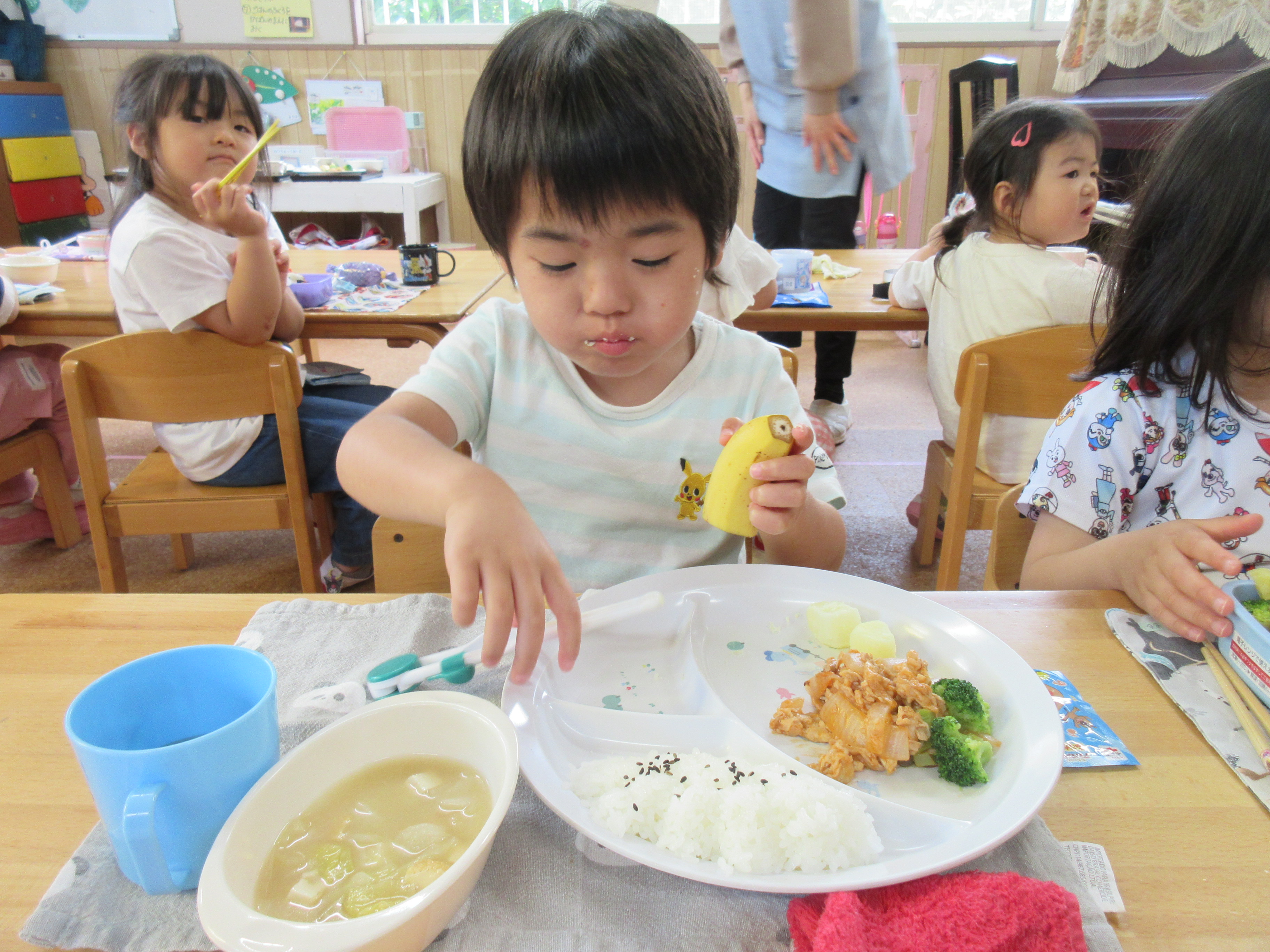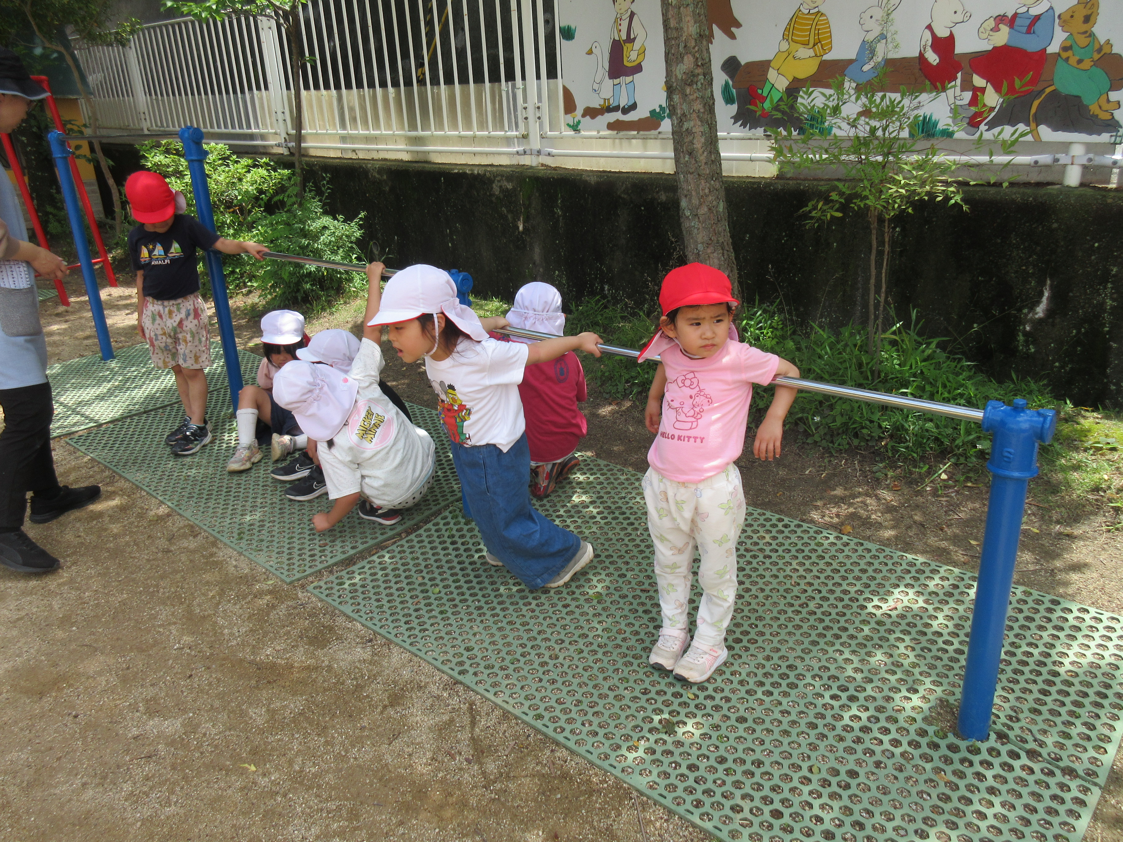 今日は途中からとってもいいお天気になり、暑いくらいの一日でしたね(^^♪子どもたちは汗をかきながらも元気いっぱい遊ぶ姿が見られました♪水分補給をこまめに行いながら気を付けて遊んでいきたいと思います!