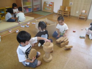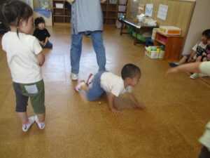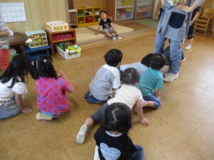 水曜日は、すみれ組さんと一緒に朝のお集まりやリトミックをし、お部屋で仲良く遊びました!リトミックでは、お馬さんやうさぎさんになりきって先生の足の下を通るなど、みんなで楽しい時間を過ごせました!
