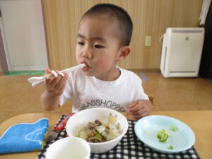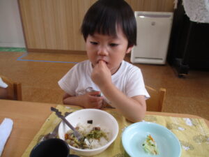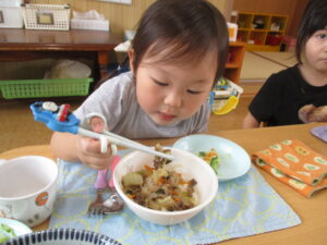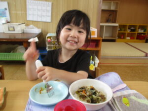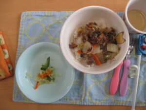 今日の給食は、牛丼とさっぱり和えでした!みんなで楽しく給食を完食できました!