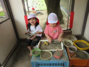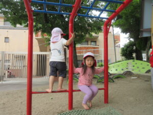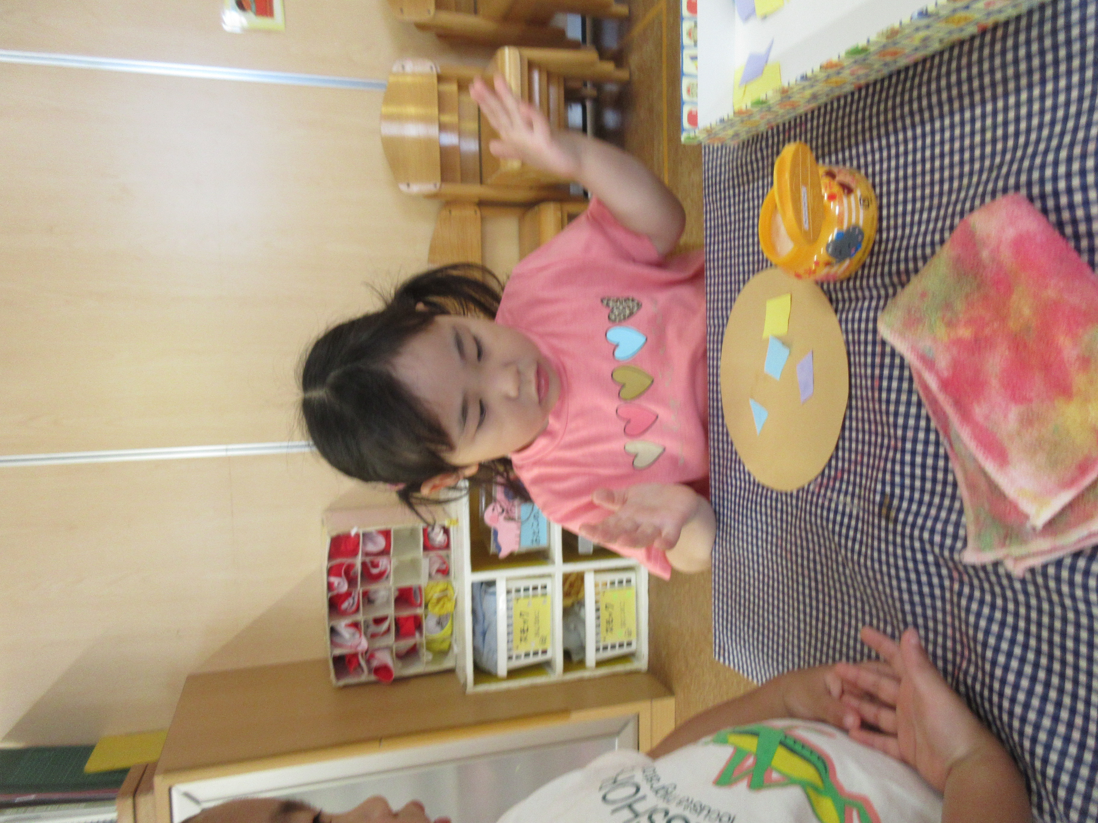 明日からお天気が良ければ、水遊びをします!必ず水遊びカードに〇か×の記入とプールバックをお持たせください。明日もたくさん遊ぼうね!お待ちしています(^^)/
