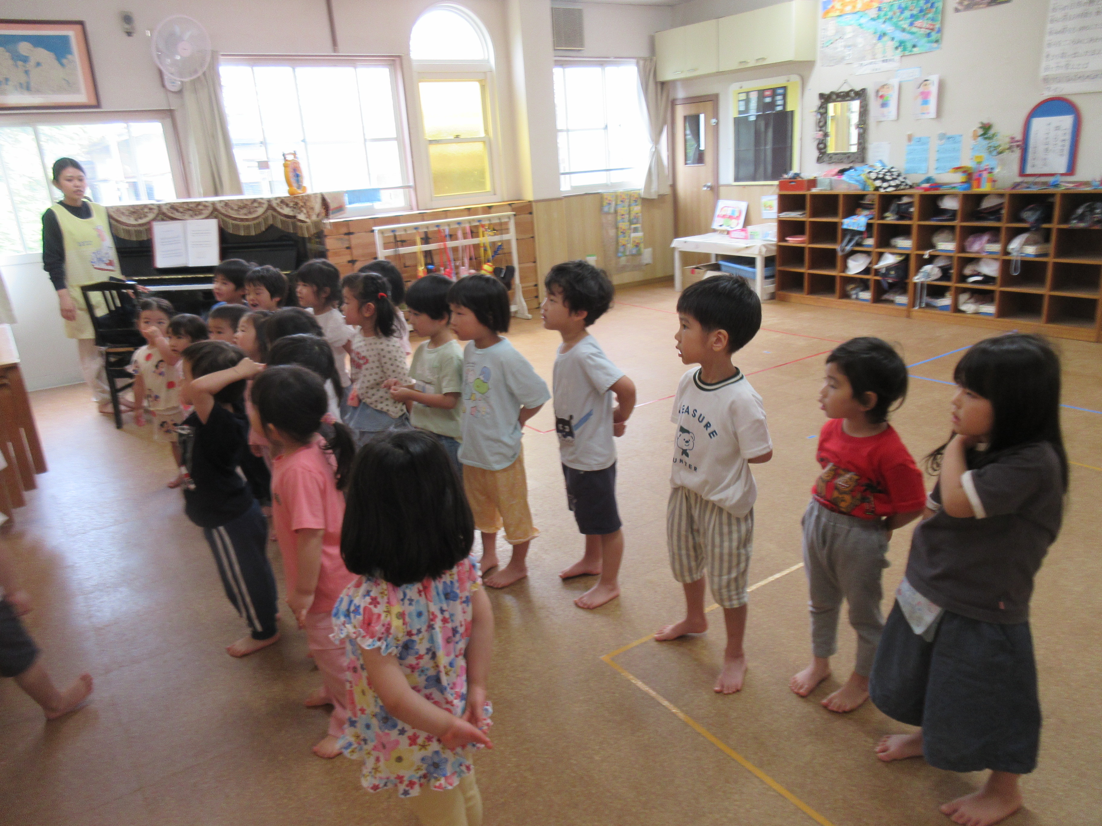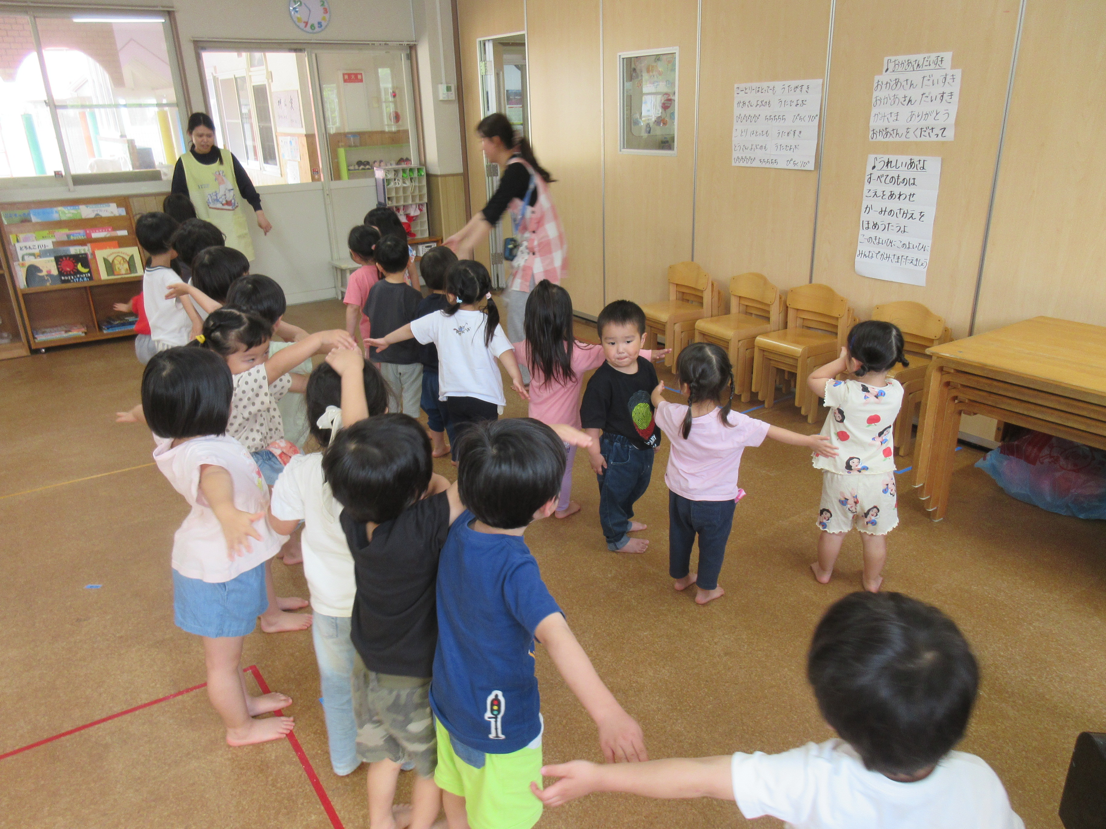 今日からはだし保育がスタートしました(^^)/「気持ちいいね」「ひんやりするよ」など裸足の感触をお話ししてくれる子どもたちでした♪戸外遊びでは、少し歩きにくそうにしている子もいましたが元気いっぱい園庭を走りまわる子どもたちでした(^_^)/~
