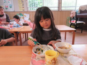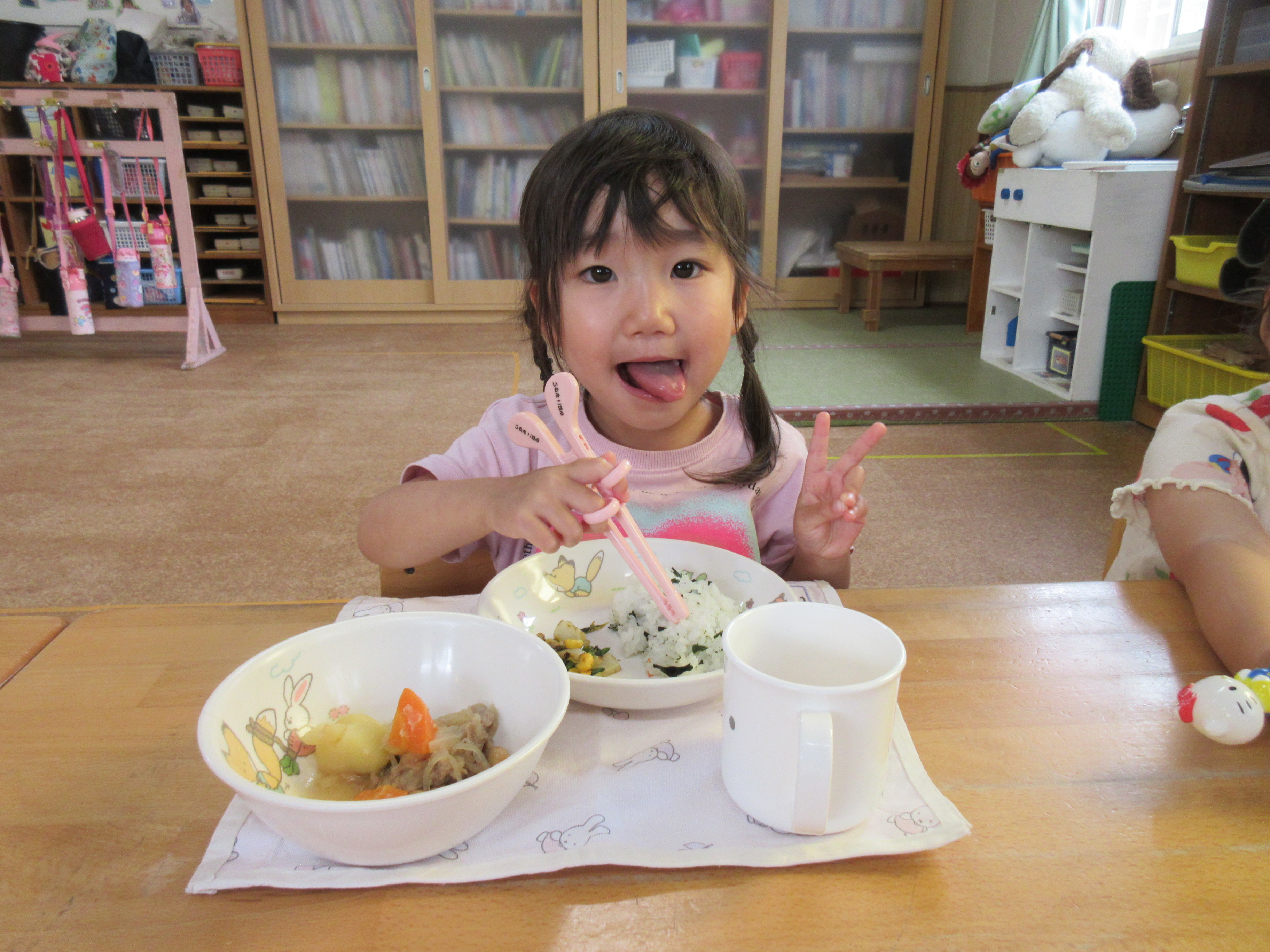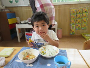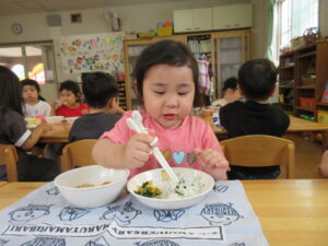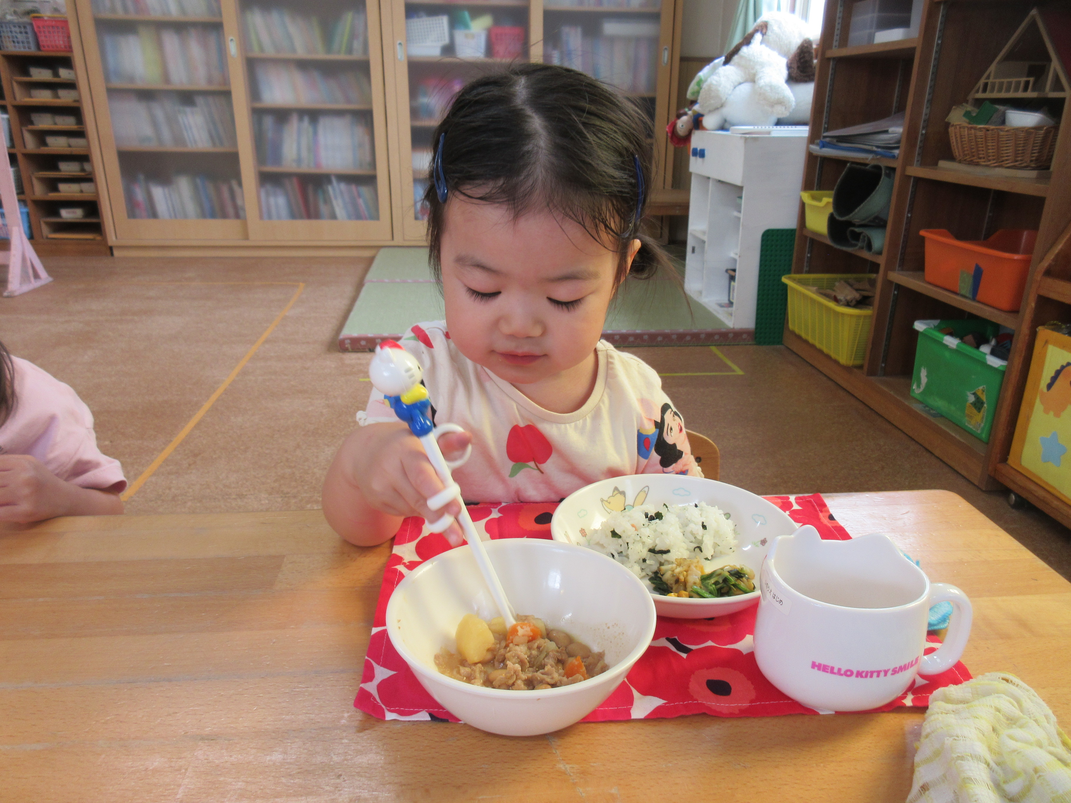 今日の給食は肉じゃがとおひたしとごはんでした(^^)/多くお口で食べ進める子どもたちでした☆美味しかったね♪