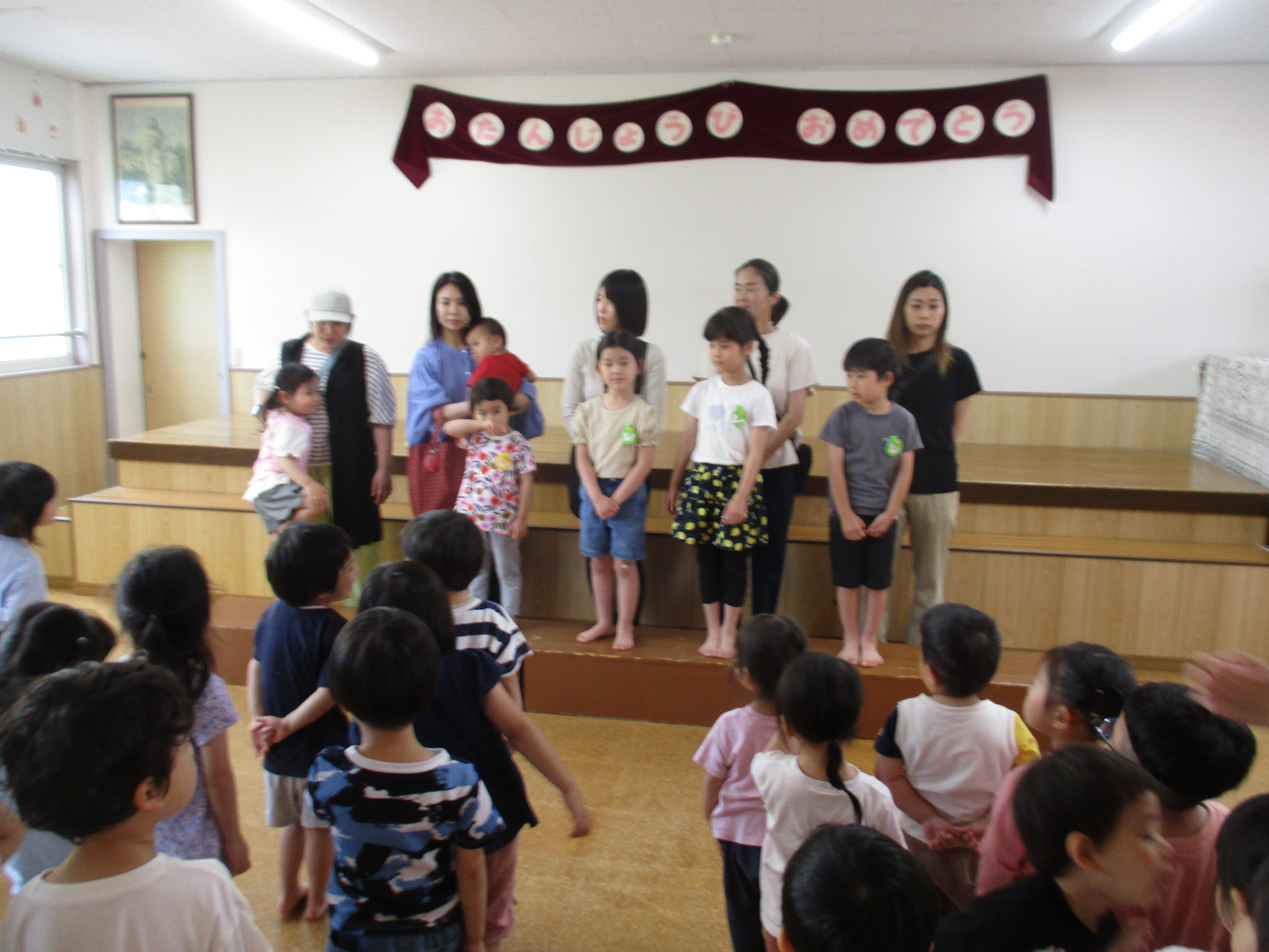 お誕生児の子どもたちはみんなの前でお名前、何歳になるかを一生懸命答えていました。