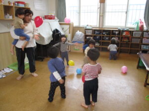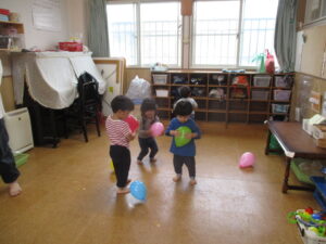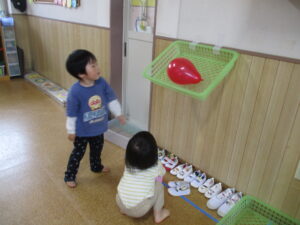 水曜日は、風船あそびをしました🎈 かごに風船を入れたり、ボールにして投げてキャッチしてみたり・・・いろんな遊び方をしてとても楽しそうでした!
