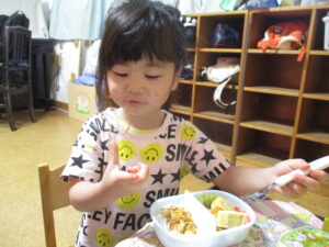 今日は大好きなお弁当!みんなで「美味しいね」と話しながら、完食できました!