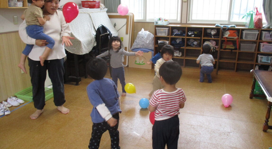 水曜日は、風船あそびをしました🎈 かごに風船を入れたり、ボールにして投げてキャッチしてみたり・・・いろんな遊び方をしてとても楽しそうでした!