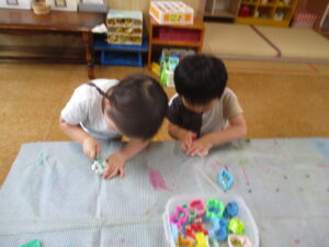 粘土が少し硬いので型にはめて取るときは少し難しそうでしたが、みんな頑張って取ろうとしていました🔥