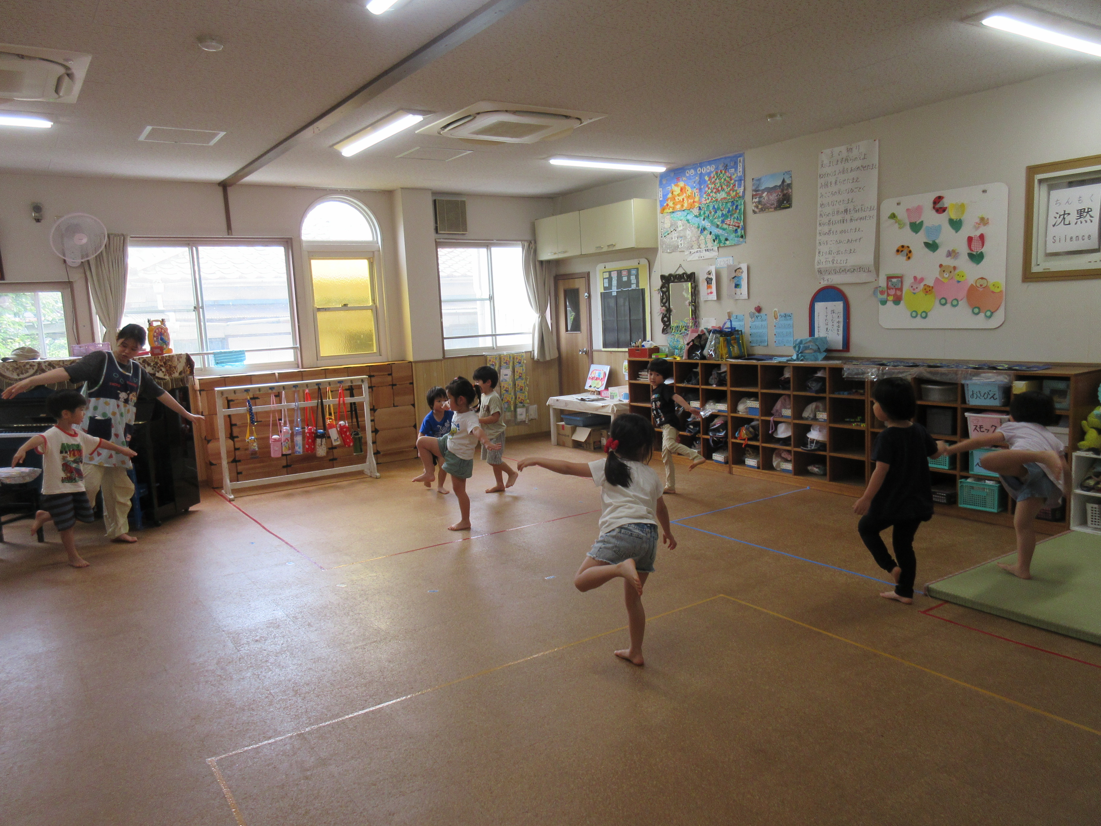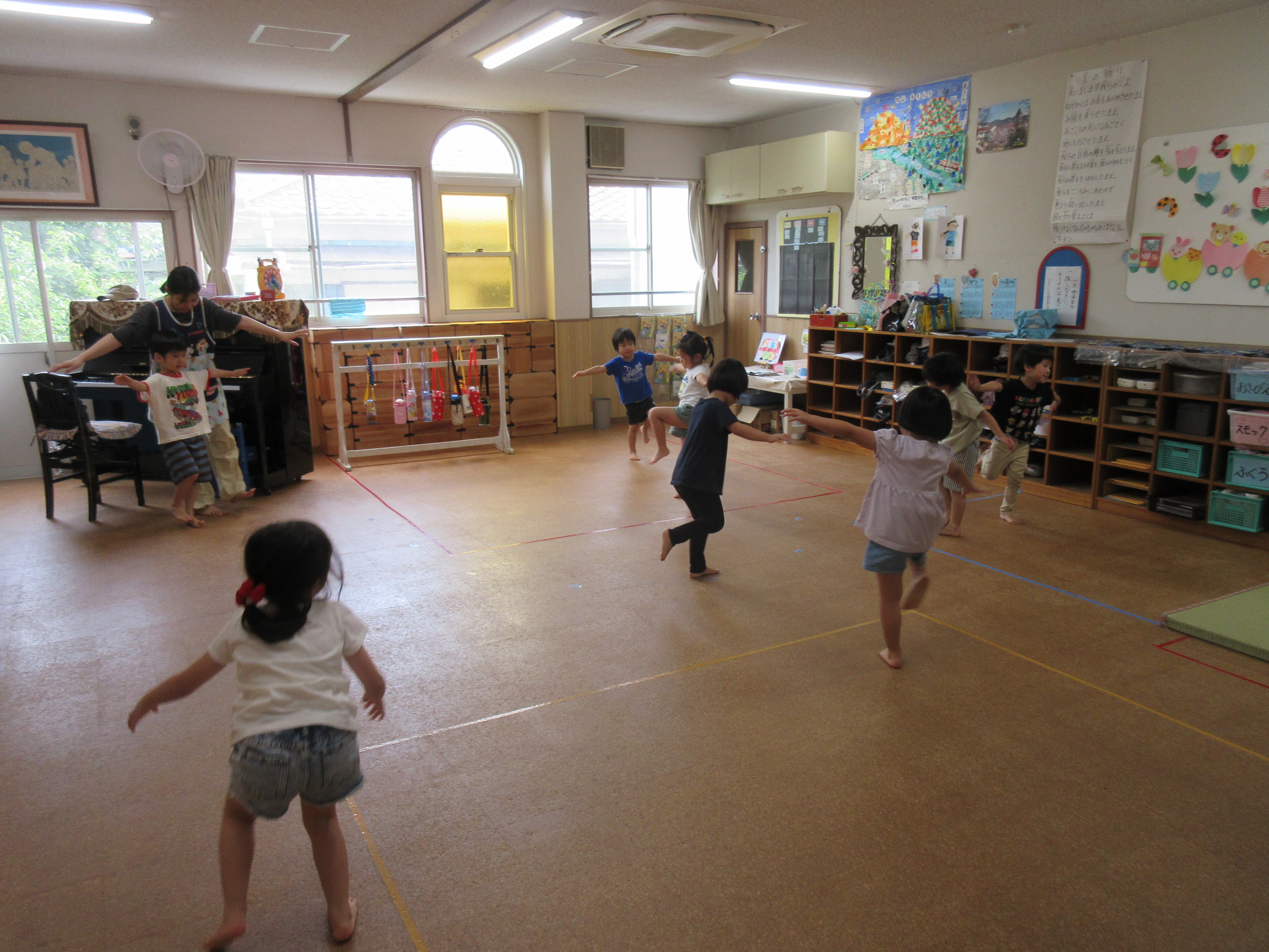 リトミックの中の片足でバランスを取るのを頑張っていました。