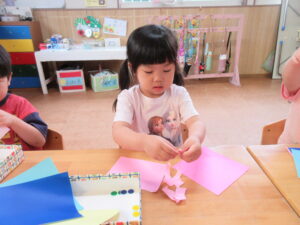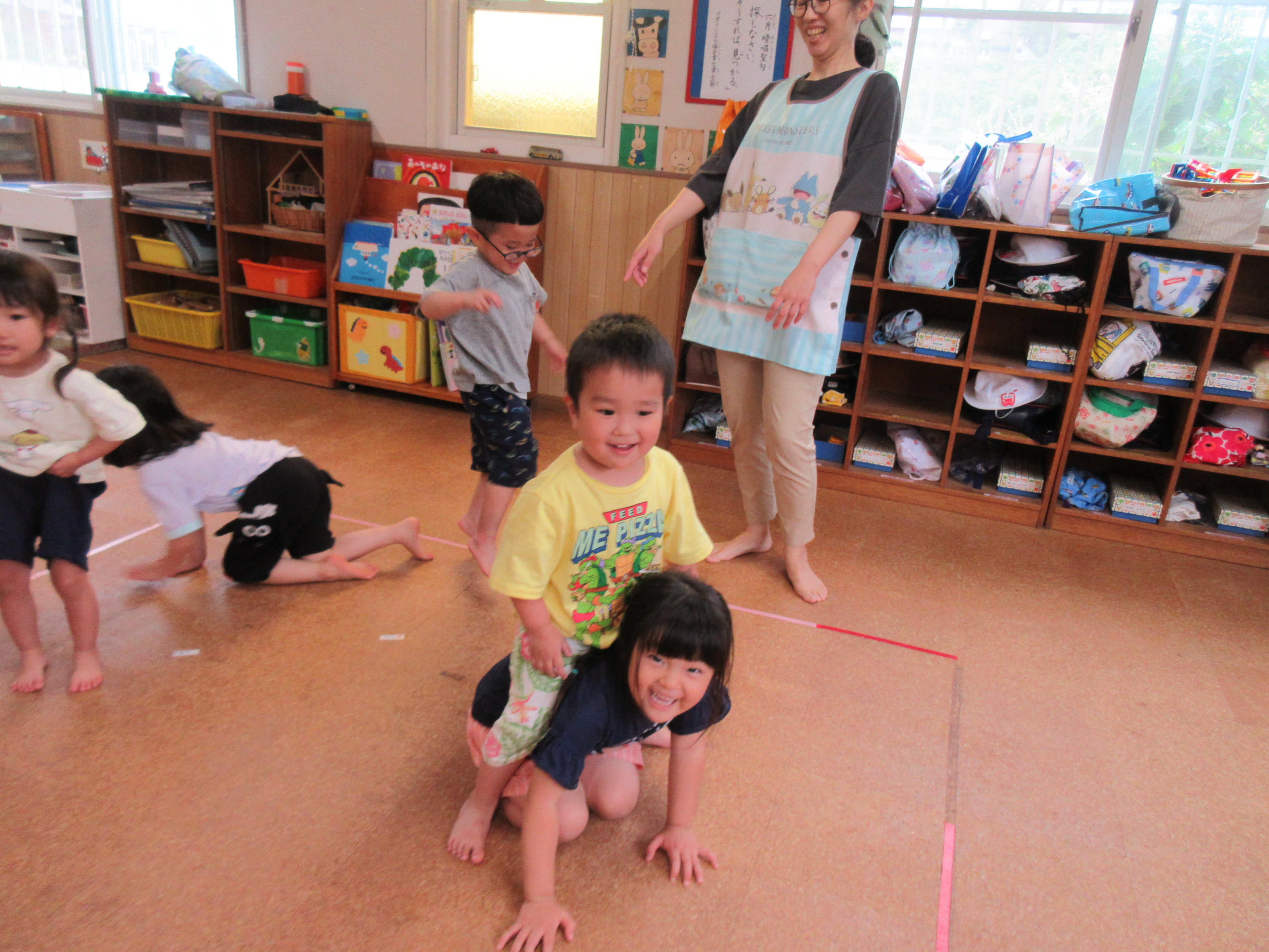 お部屋では、なべなべそこぬけや2人組でトンネルくぐりなどみんなで協力する遊びをしています♪みんなで声をかけながらしていてとても可愛らしいです♡