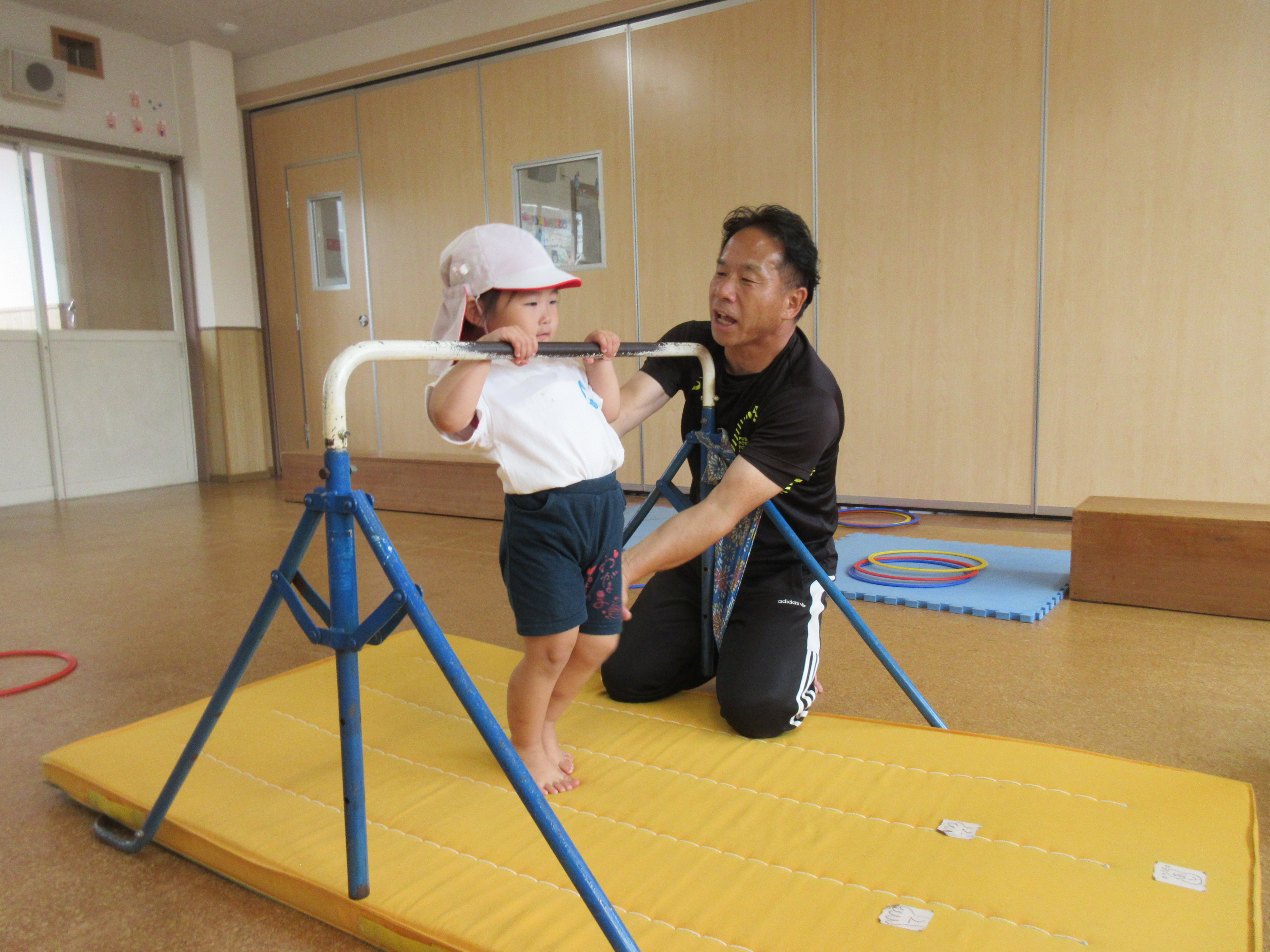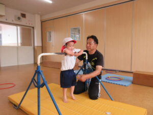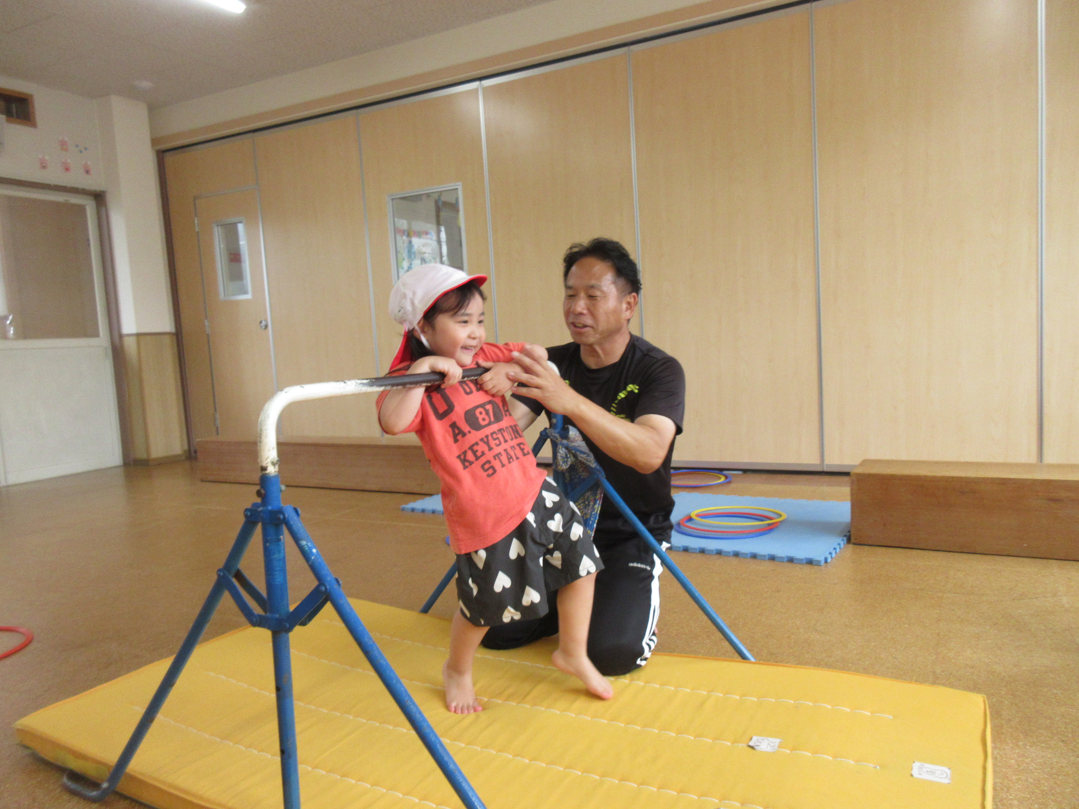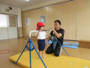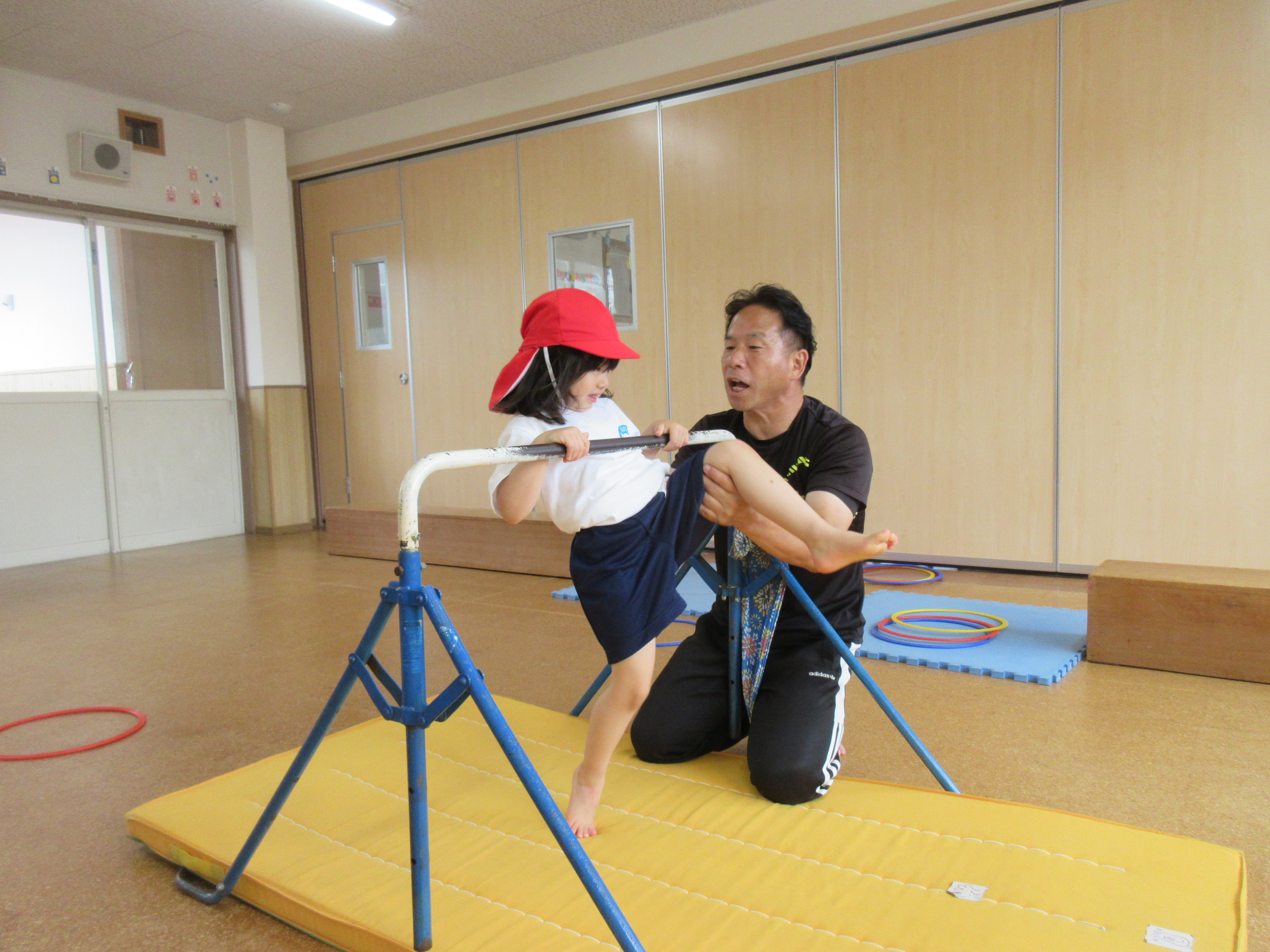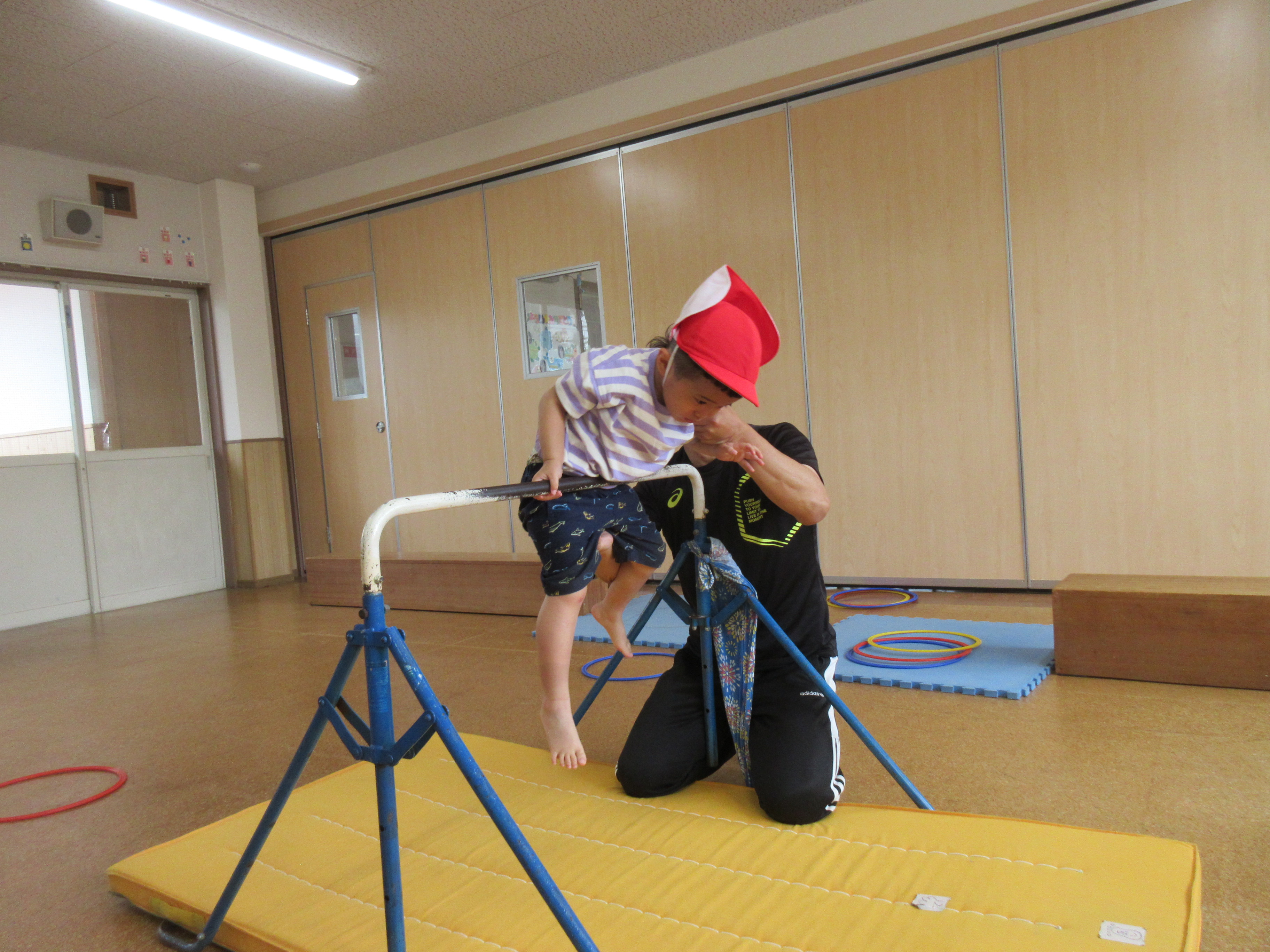 鉄棒の練習をしたり、マットでは前回りや、跳び箱など運動会にむけて練習を頑張っています☆