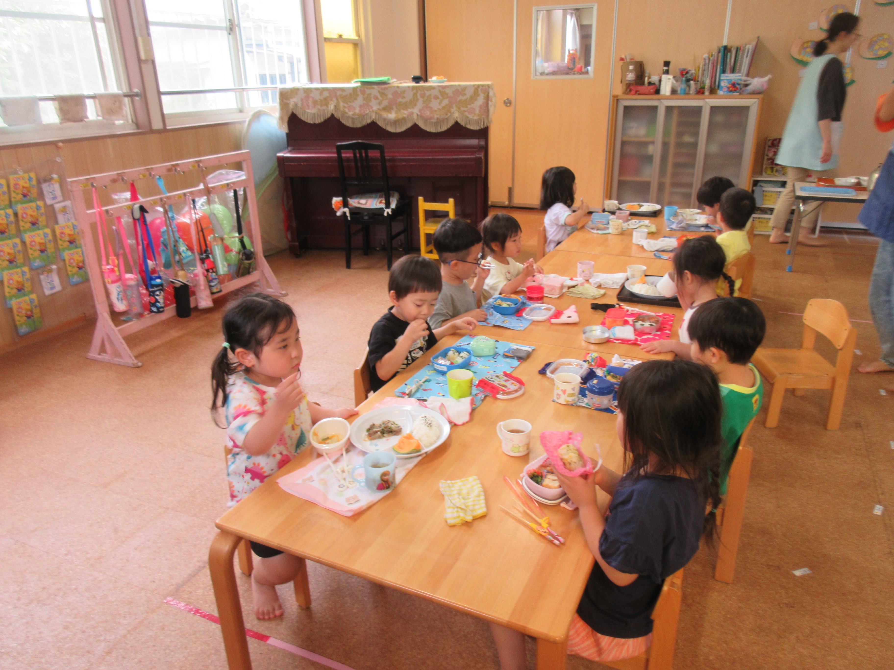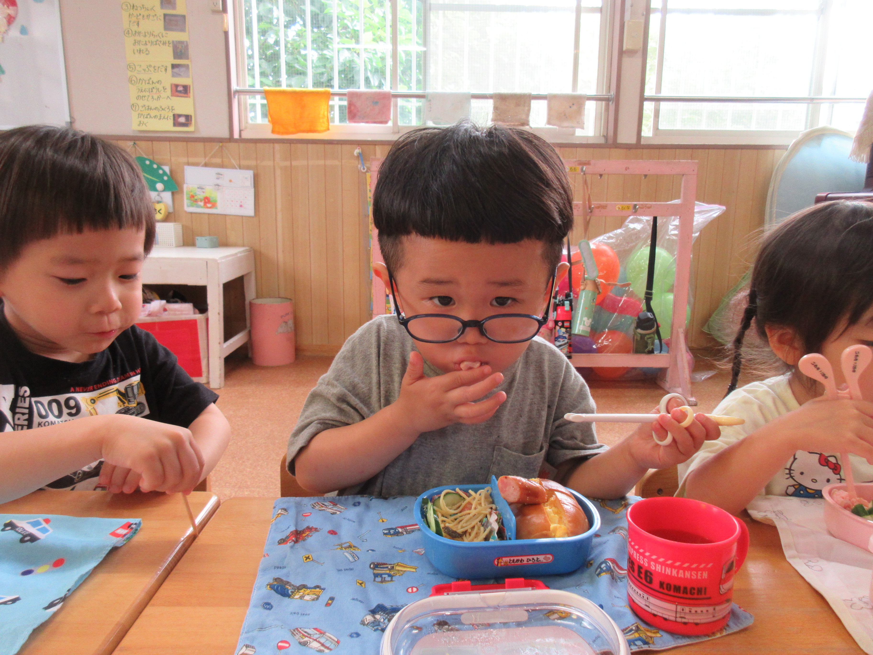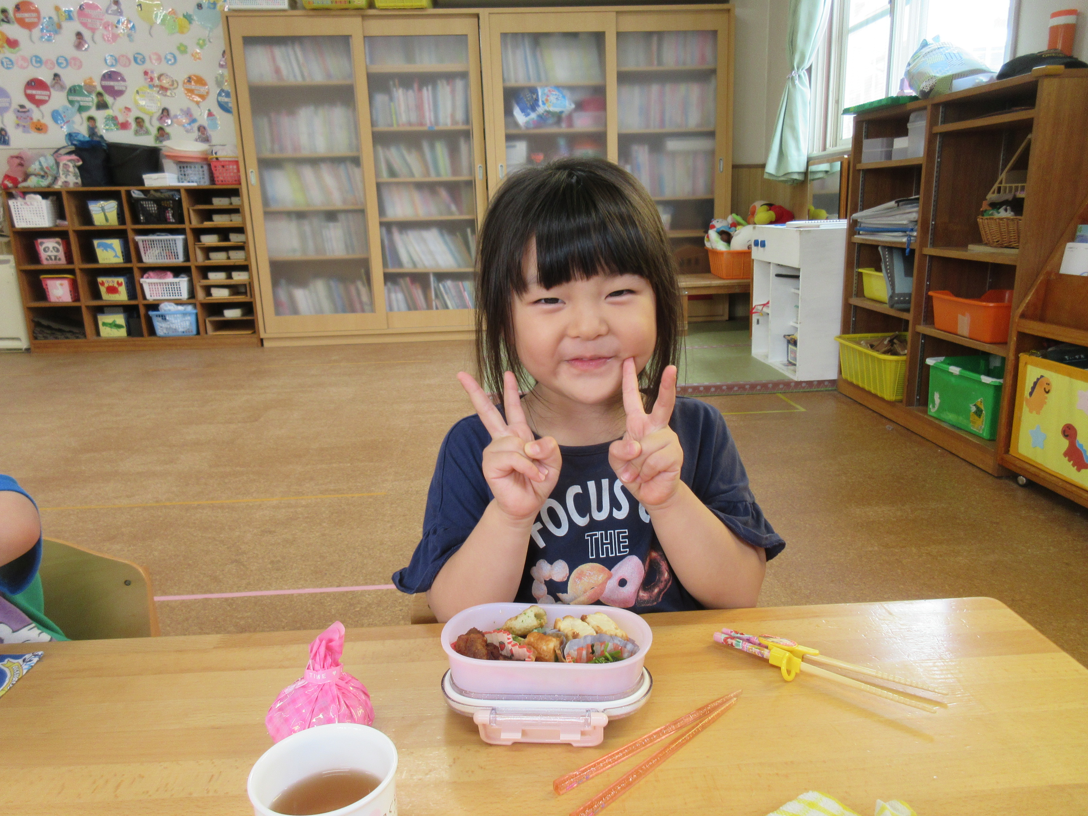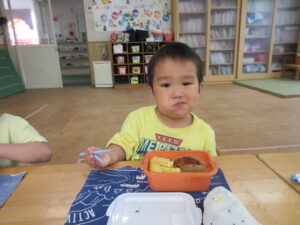 今日の昼食の様子です(^^)/ご飯を食べた後はゆり組のお部屋に遊びに来ていいよと言ってもらえていたのでパクパク食べ進める子どもたちでした♡
