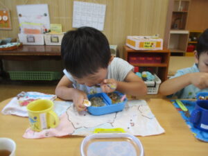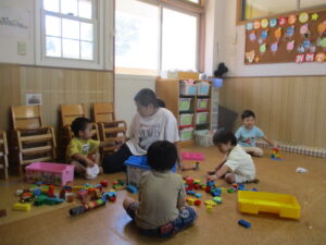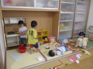 お部屋あそびでは、プール遊びで少し疲れている様子もあったので休憩しながら、自分の好きなおもちゃで楽しく遊んでいました!