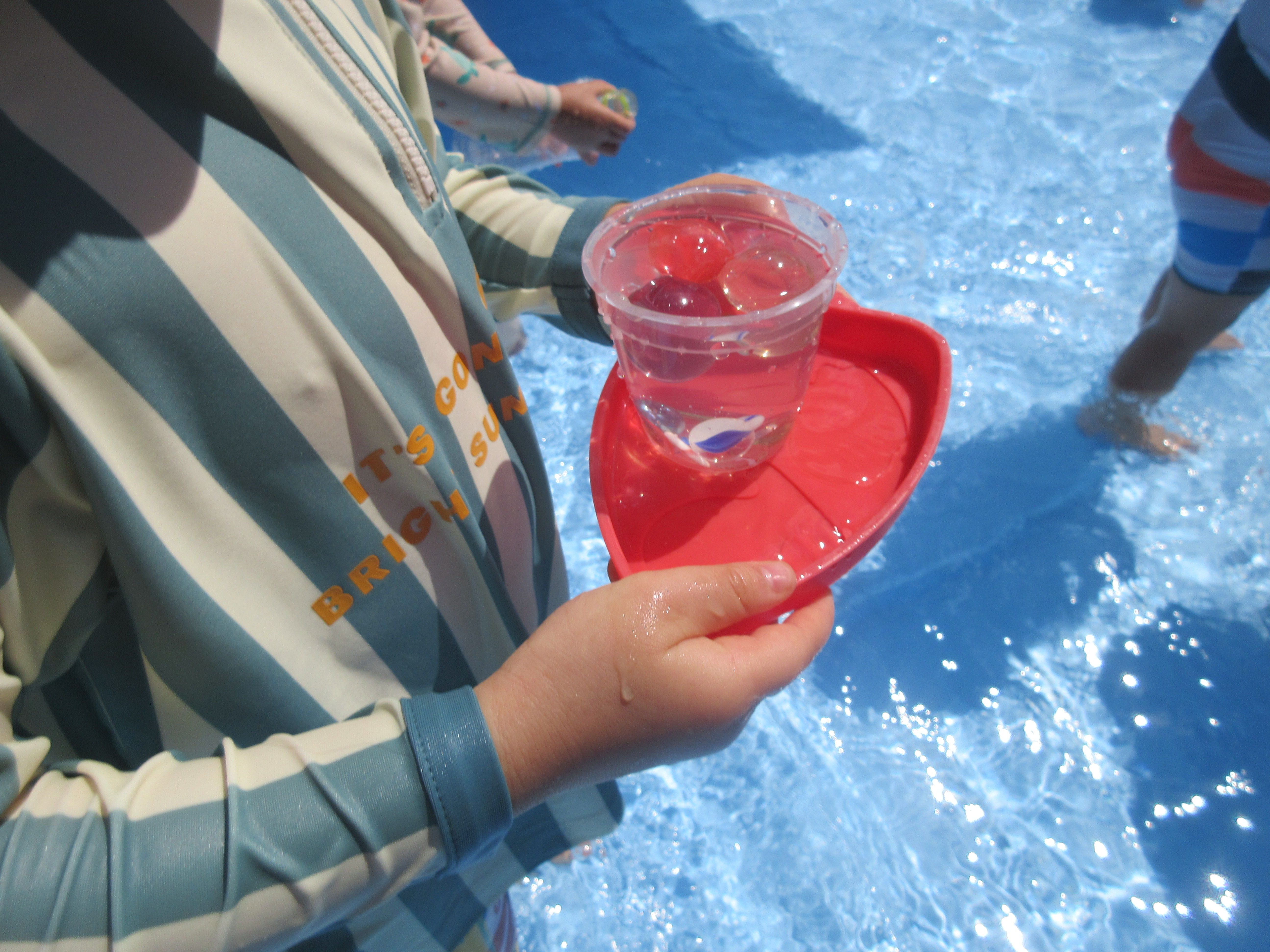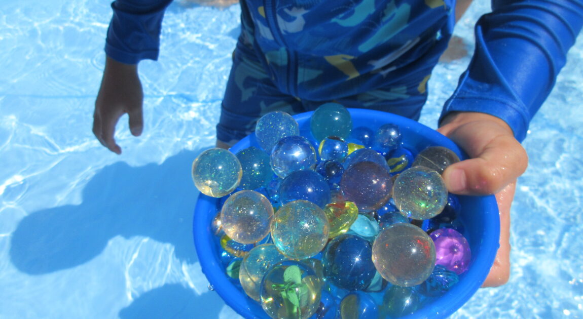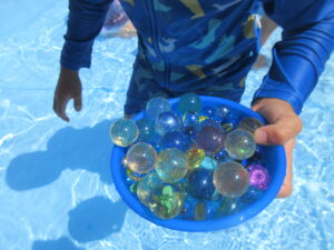 夏期保育2日目🌞お天気も良く今日もプールあそびを楽しむ子どもたち(^^)/ゆり組のお友だちがトンネルを作ってくれそこを嬉しそうに通ったりビー玉やスーパーボールを集めて宝探しを楽しむ子どもたちでした♪
