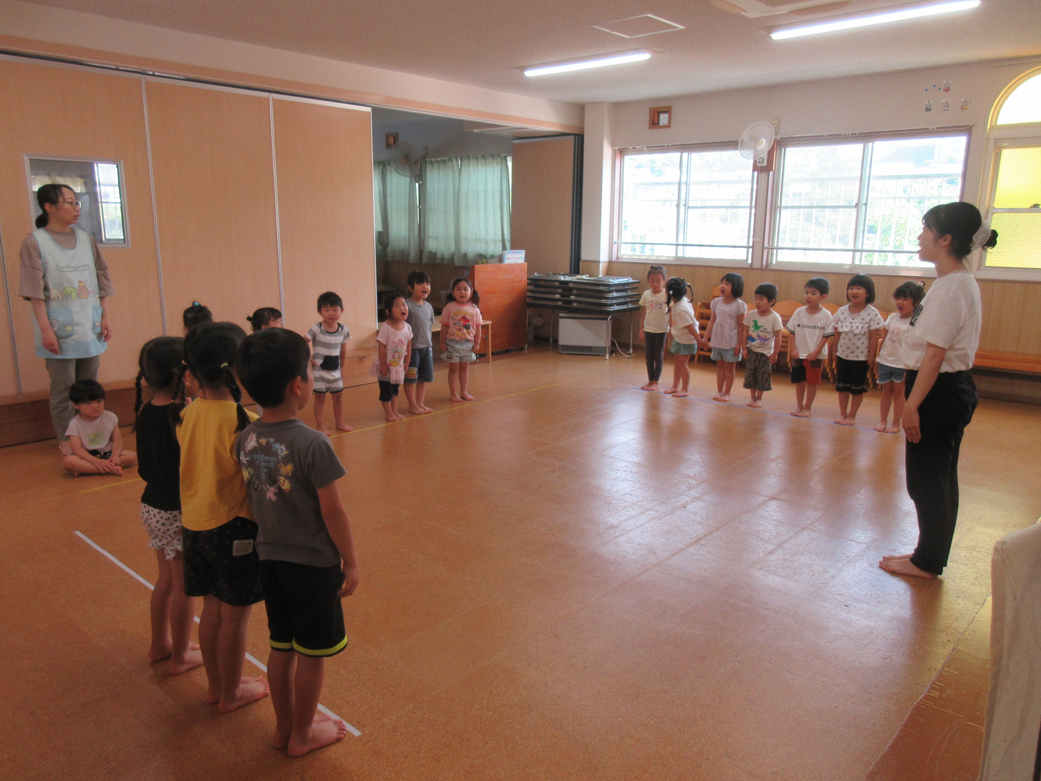 みんなで朝のお集まりをしたり、、