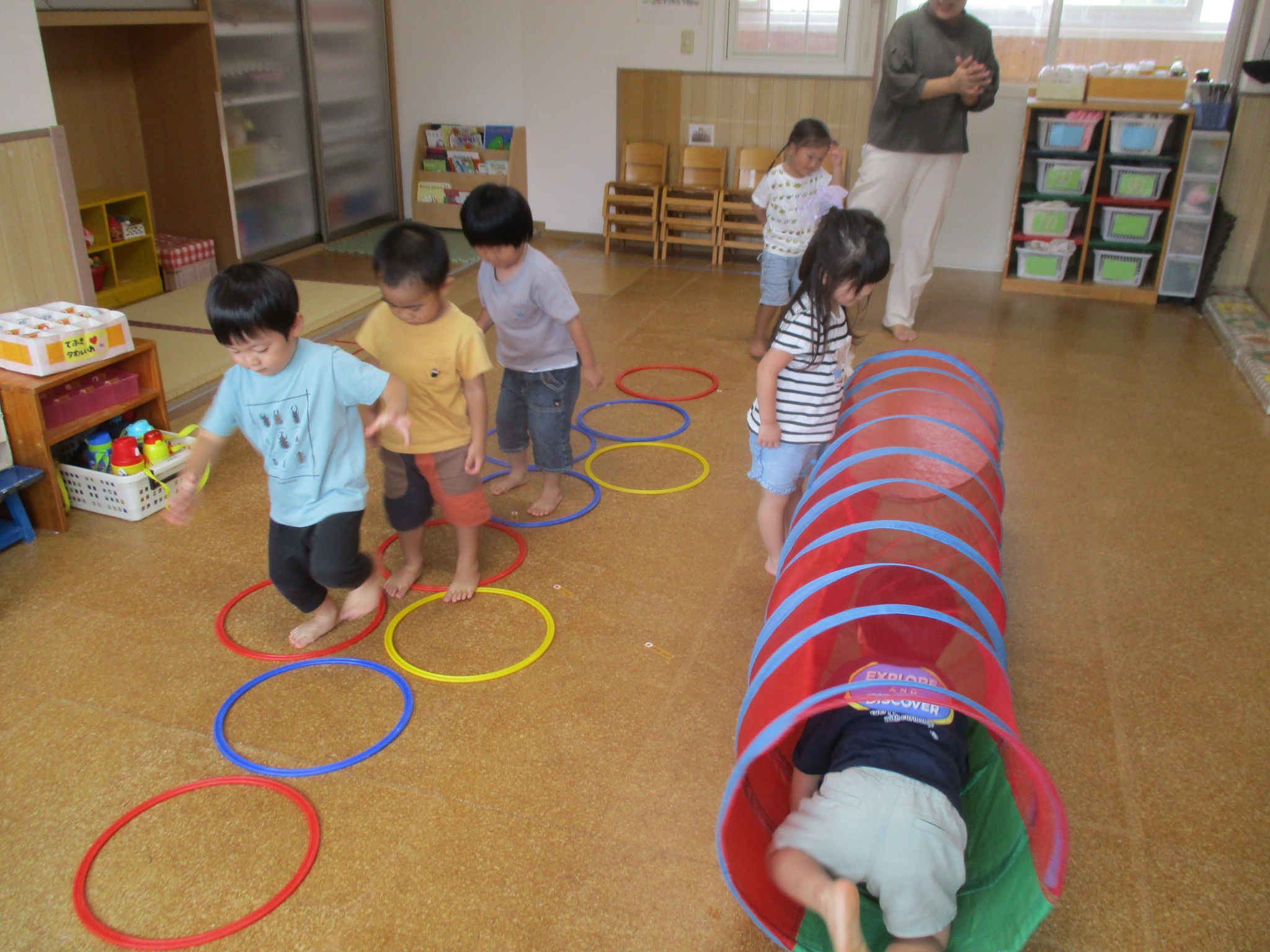ひよこどんぐり組さんは、お部屋でサーキットをしました🎵