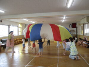ゆり組さんは、組体操。すみれ組さんは、パラバルーン。たんぽぽ組さんは、怪獣ダンスを頑張っています😊✨