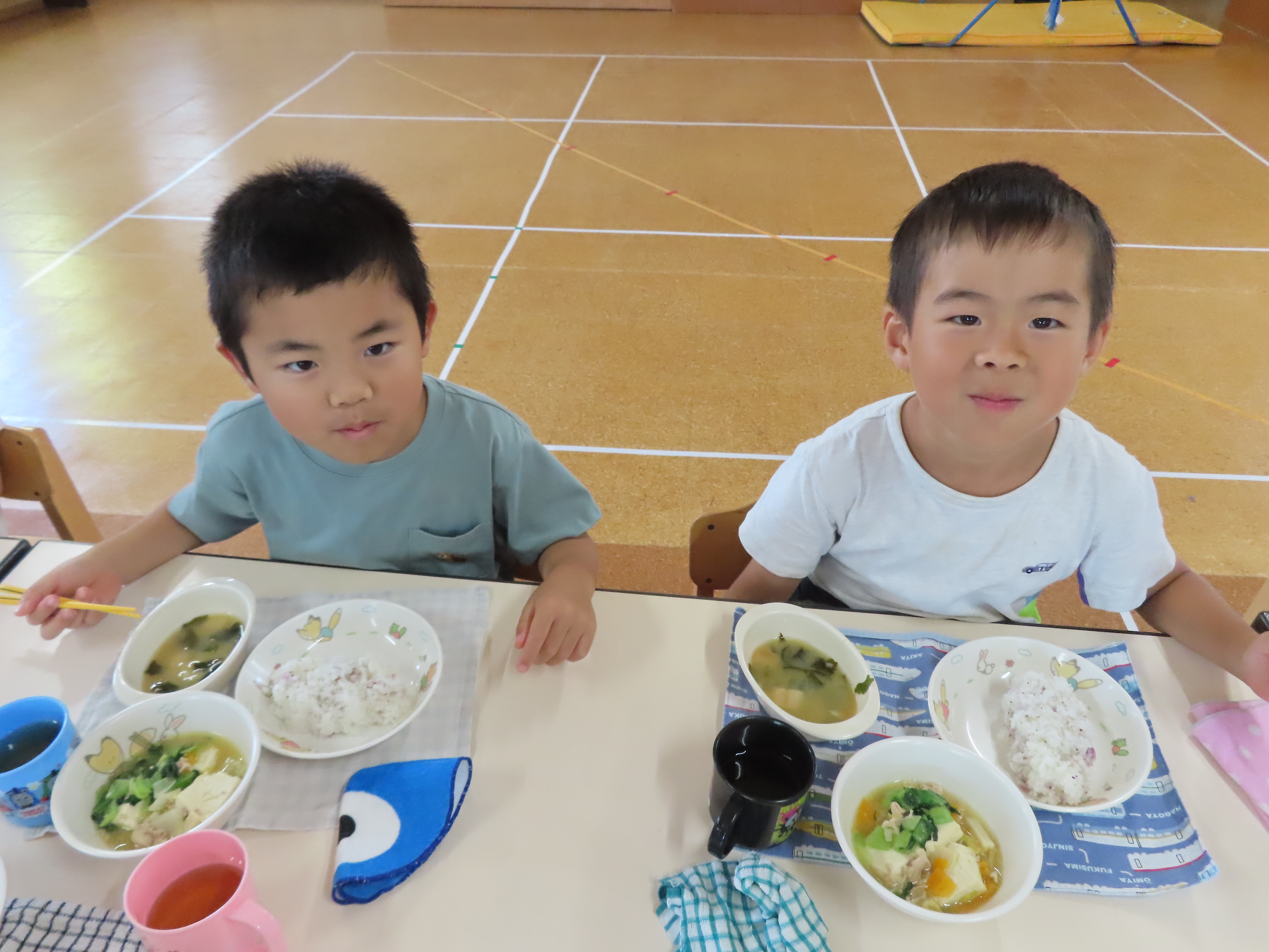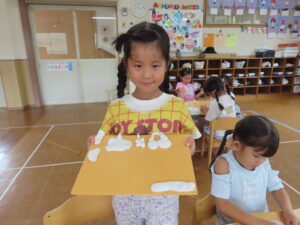 月曜日は、絵本袋、赤白帽子を忘れないようにお持たせ下さいね。