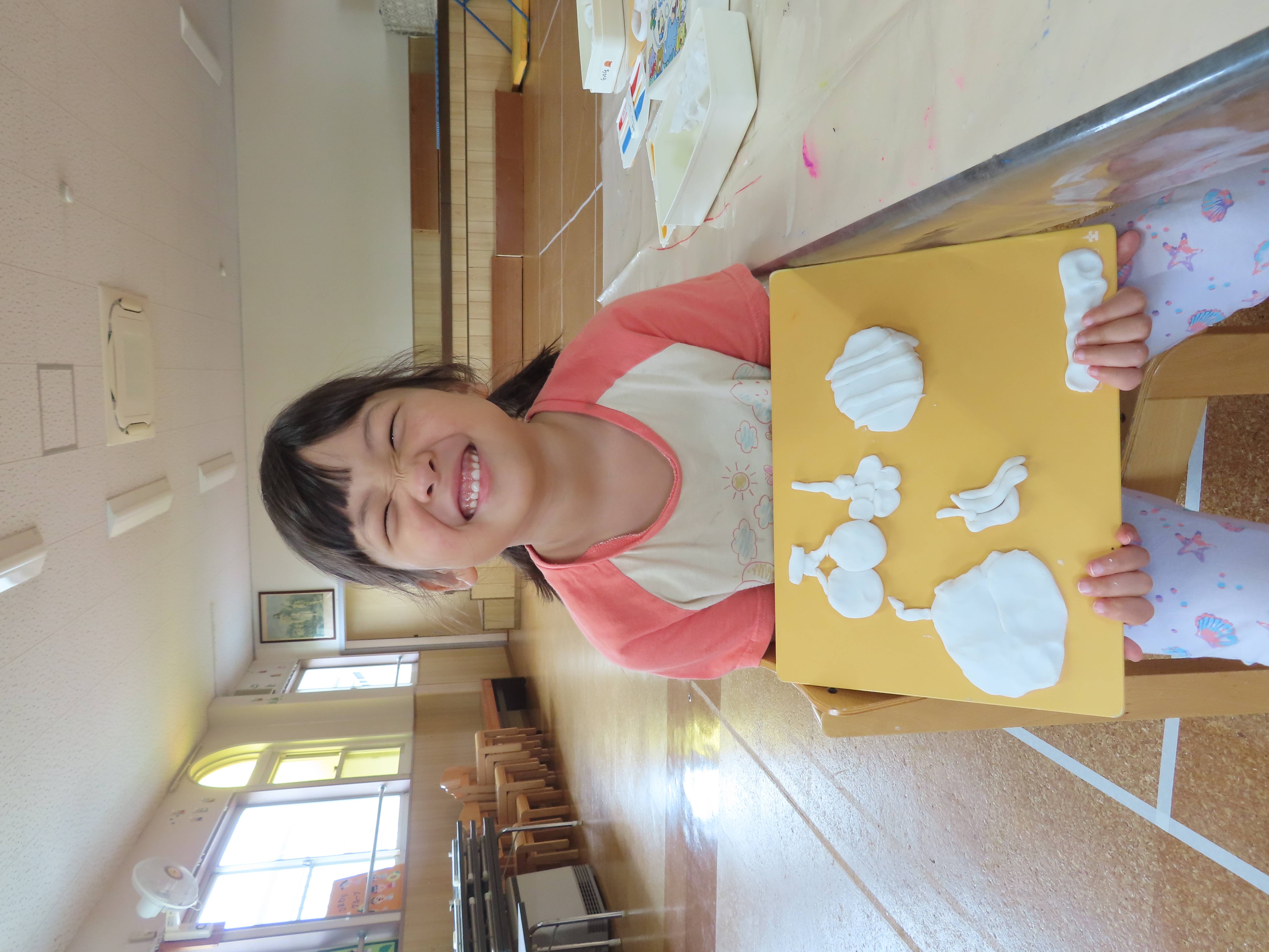 しかし、お部屋と園庭では、広さが違いすぎて。なんとも上手にできていたのに、間に合わない事態もあり、