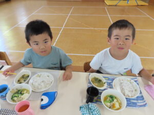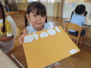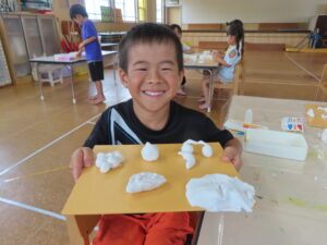 今日の朝はすこし涼しさを感じましたが、幼稚園の空は、青々と太陽が照り付け