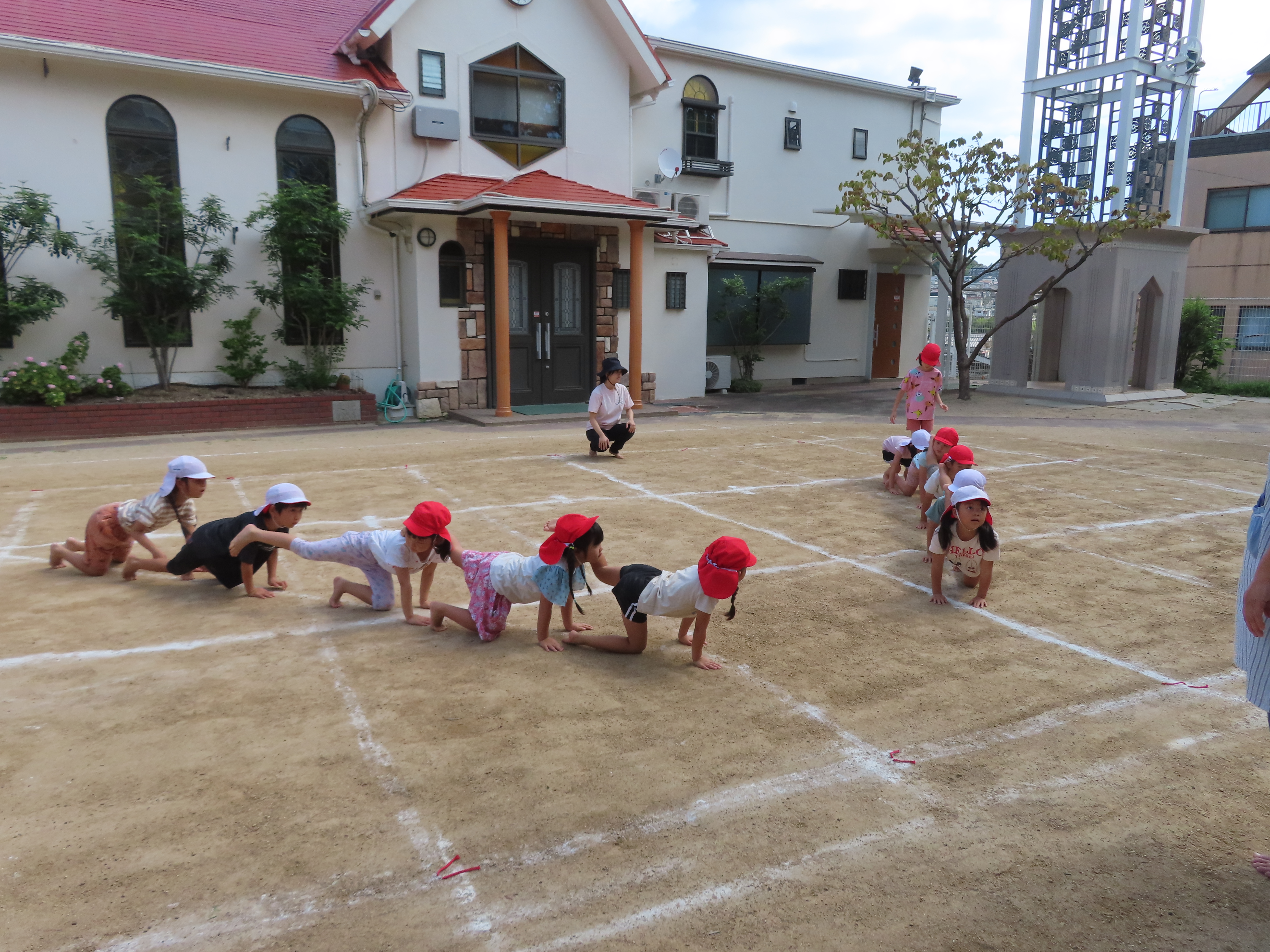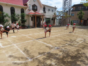 練習のあと、お外遊びを楽しんだゆりぐみさんです。お外遊びも元気一杯でした。