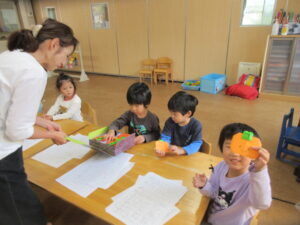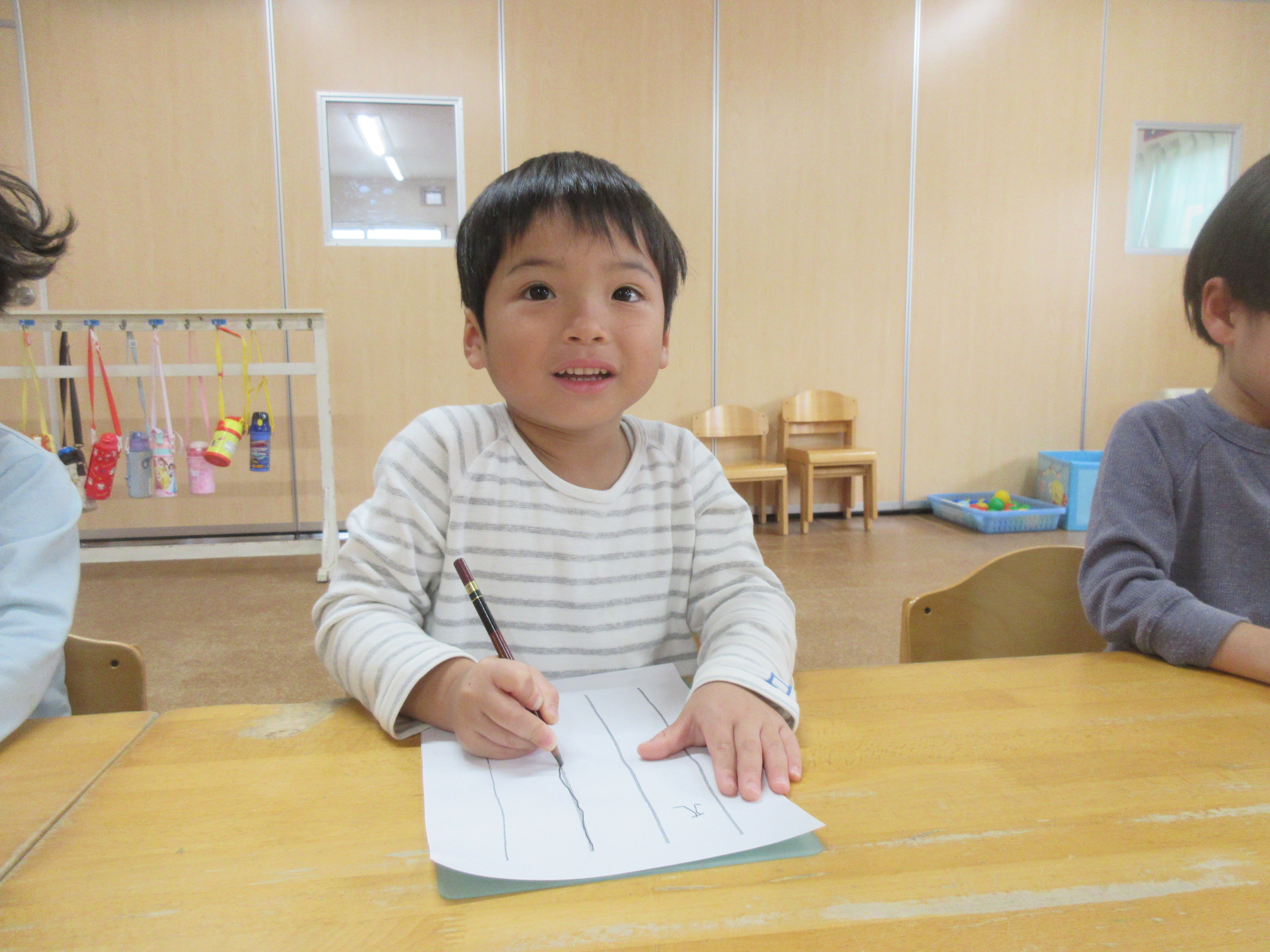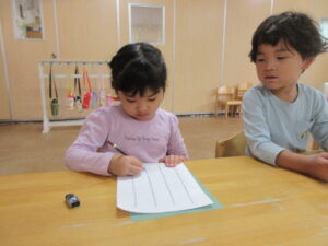 火曜日に初めてのひらがなあそびがありました✍鉛筆の正しい持ち方から数字やひらがななど練習をしました!みんなやる気に満ち完成したプリントに大きな花丸をもらえて嬉しそうでした💗最後は素敵なプレゼントを頂きました!