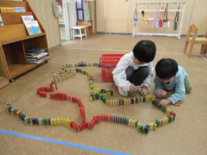 お外遊びもお部屋遊びもどちらも楽しそうで、特に最近はドミノがとっても上手なすみれさんです!