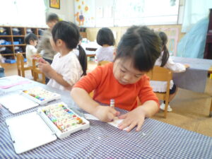 今日からまた新しい1週間が始まりましたね(^^)/お部屋ではリトミックや楽器遊びをしたり、先週からお当番活動がスタートし、お当番さんがお集まりの司会進行をしてくれています♡自分の順番が早く回ってきてほしい子どもたちです♬
