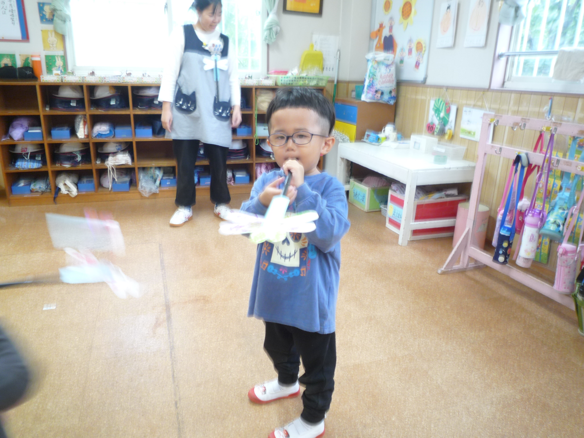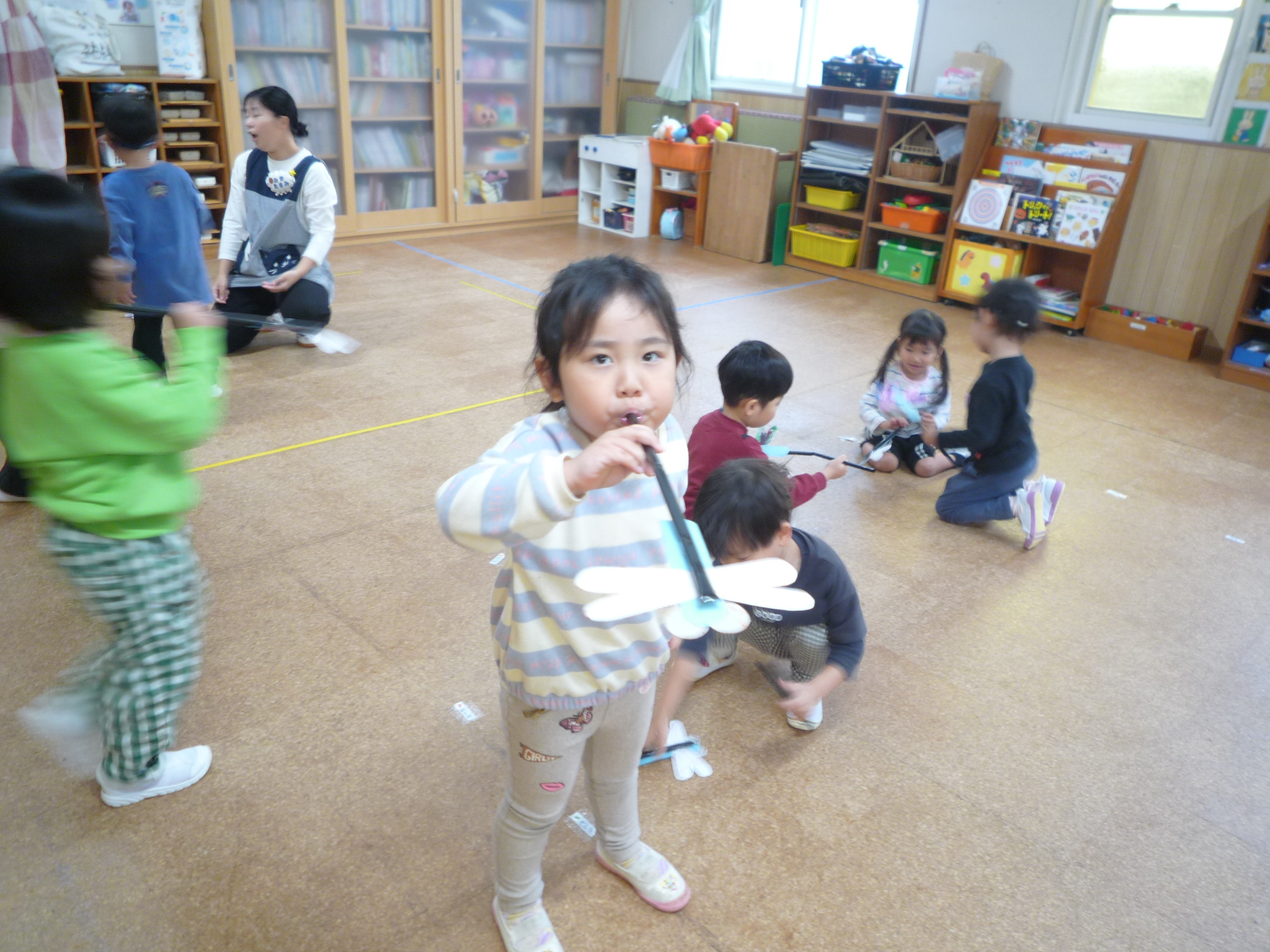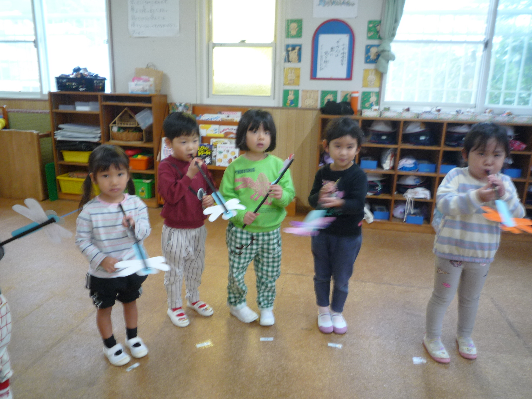 最後は出来上がった、トンボを飛ばせて遊びました!また、持ち帰りますのでお家でも遊んでみてください♡