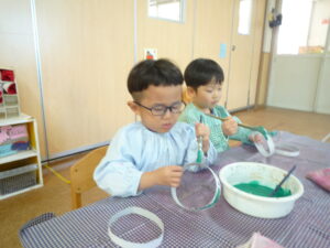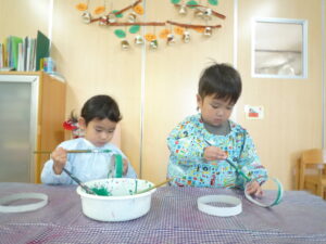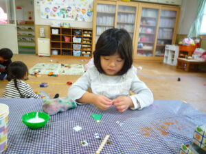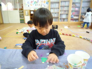 細かツリーにシールを張ったり雪だるまを作ったり、細かい作業も集中して取り組んでいました♬