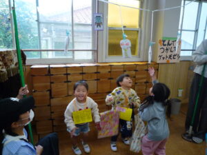 お家に持って帰ったらお金をためて困っているお友だちにこのお金を使ってご飯やお薬をプレゼントしようねとお話ししています!「お手伝いしてお金をもらうね」とやる気一杯な様子でした(^^)/