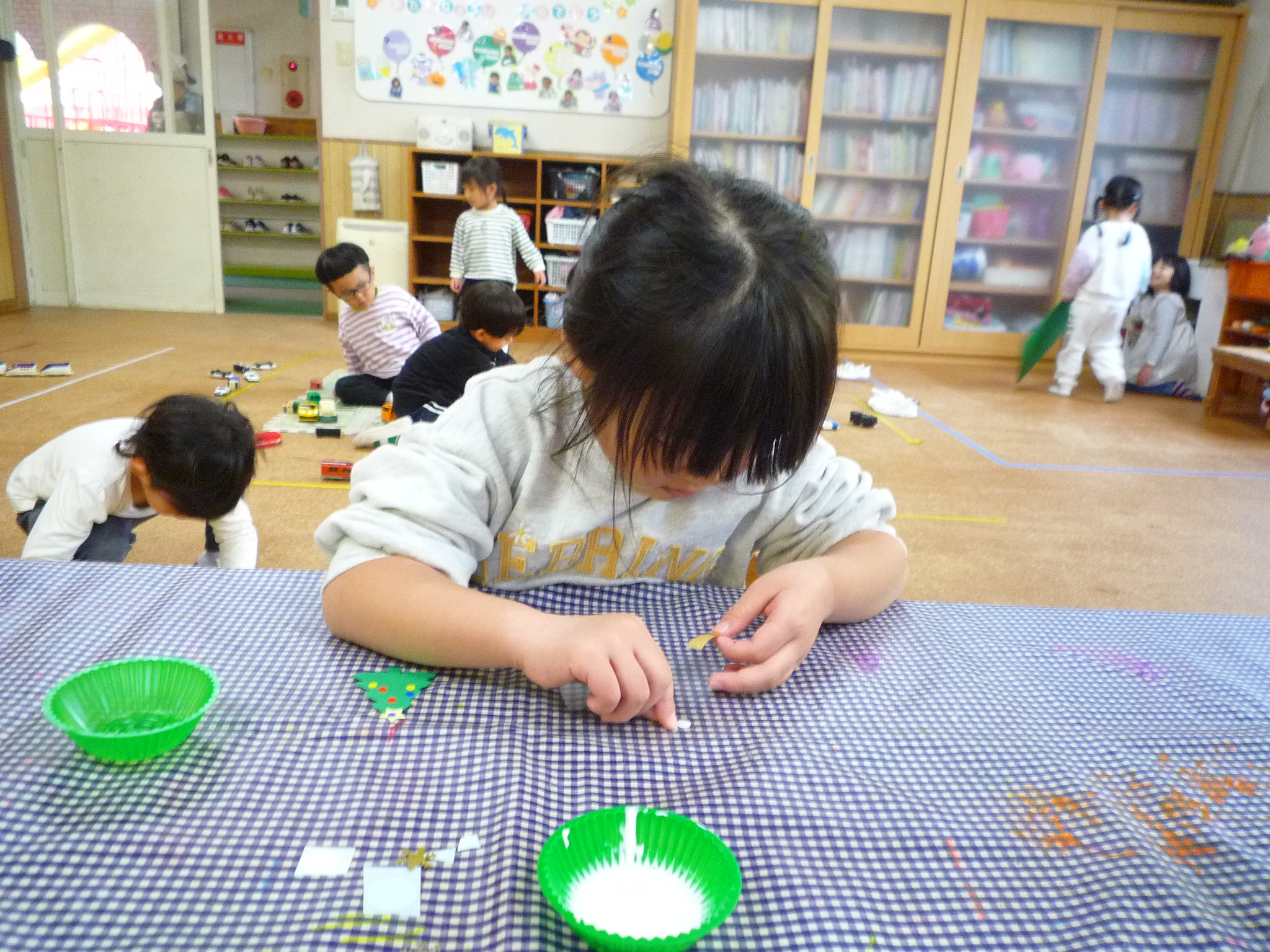 細かツリーにシールを張ったり雪だるまを作ったり、細かい作業も集中して取り組んでいました♬