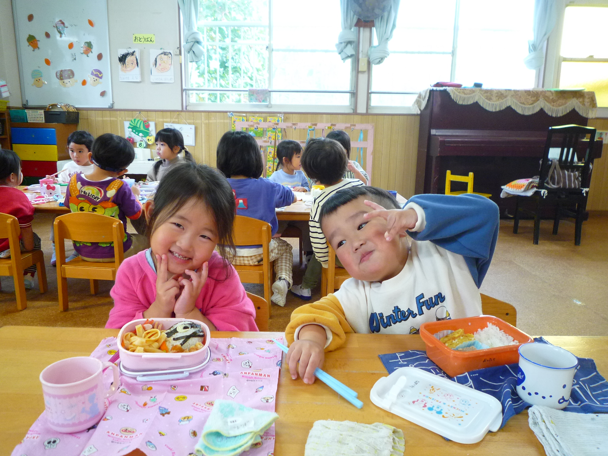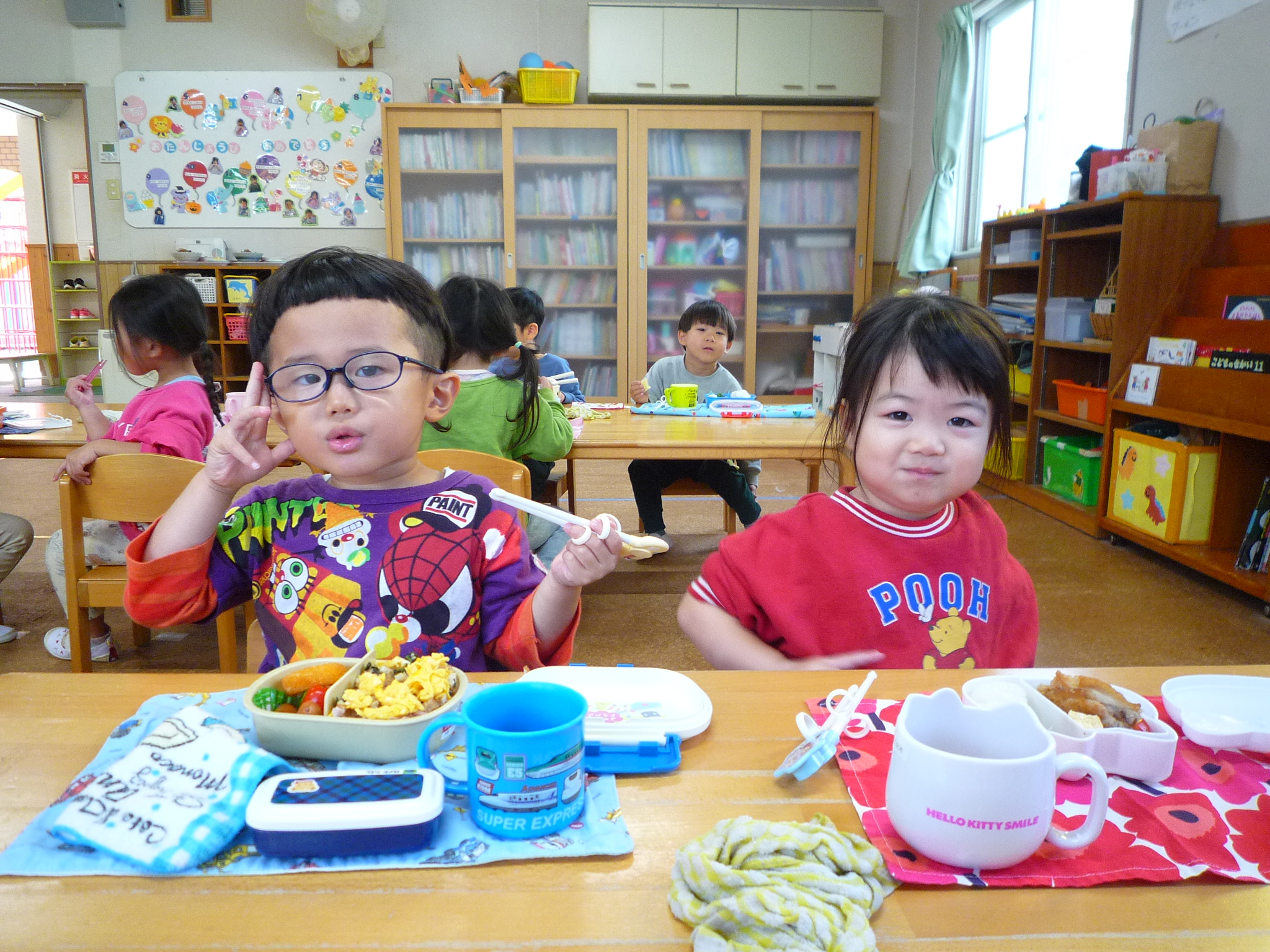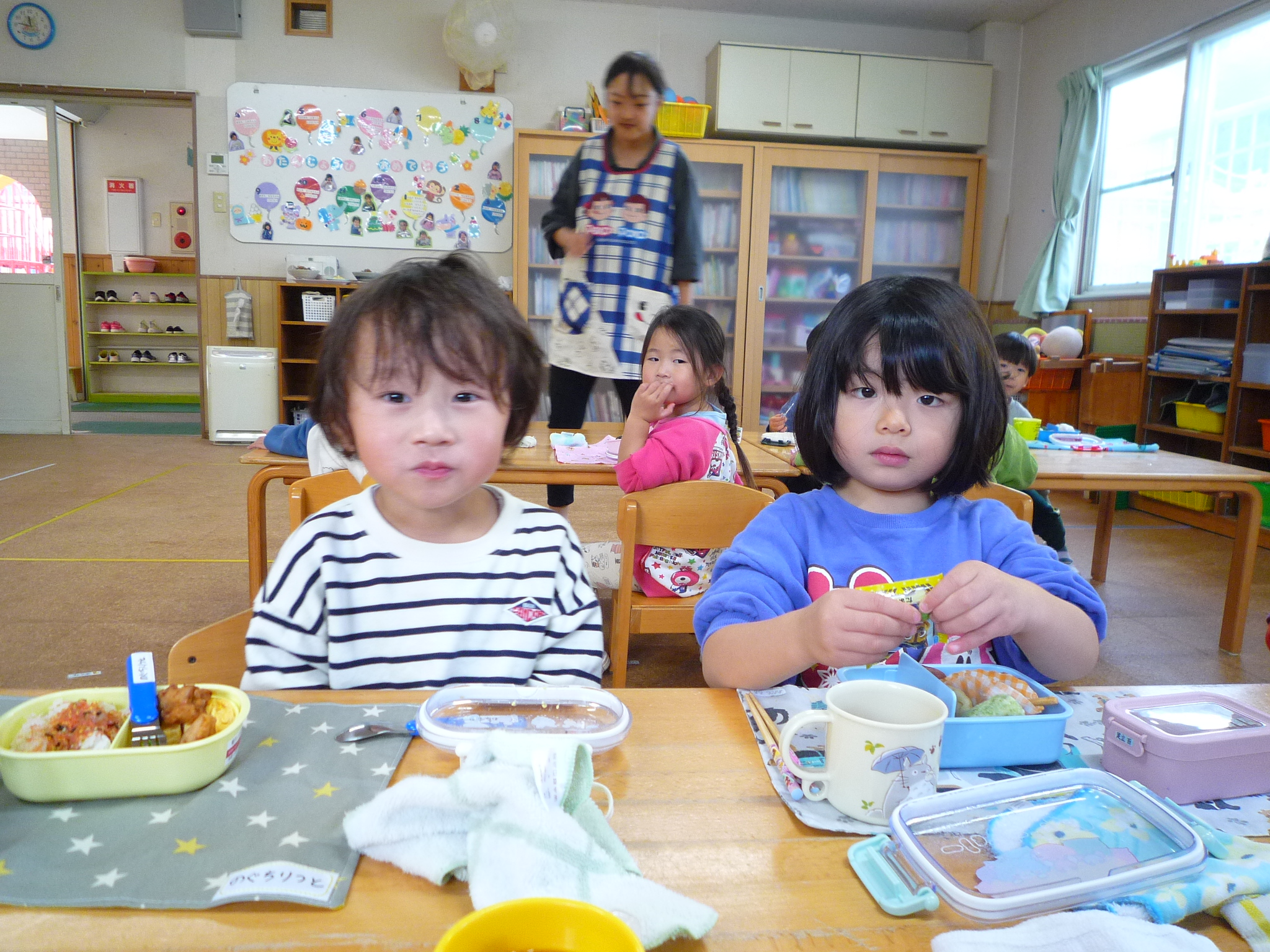 今日の昼食です!お弁当の日は、いつもより早く「お腹がすいたよ♡」と教えてくれる子どもたちです(^^)/今日もとっても美味しかったね!