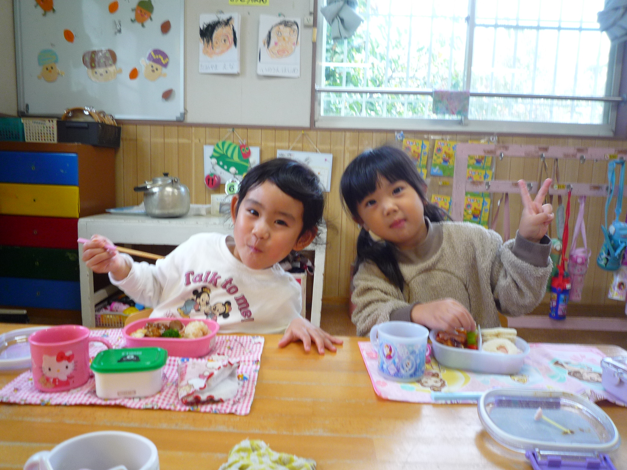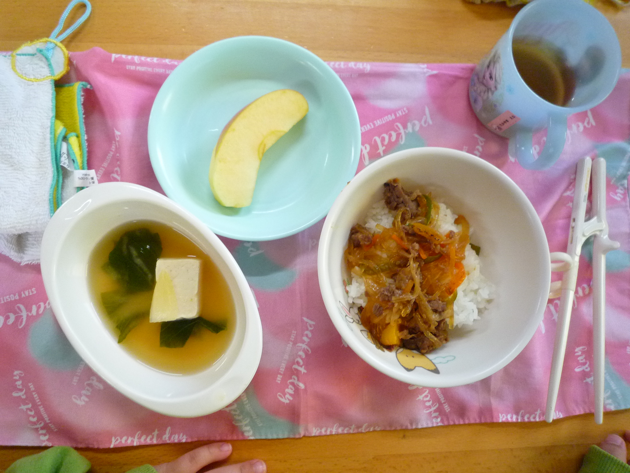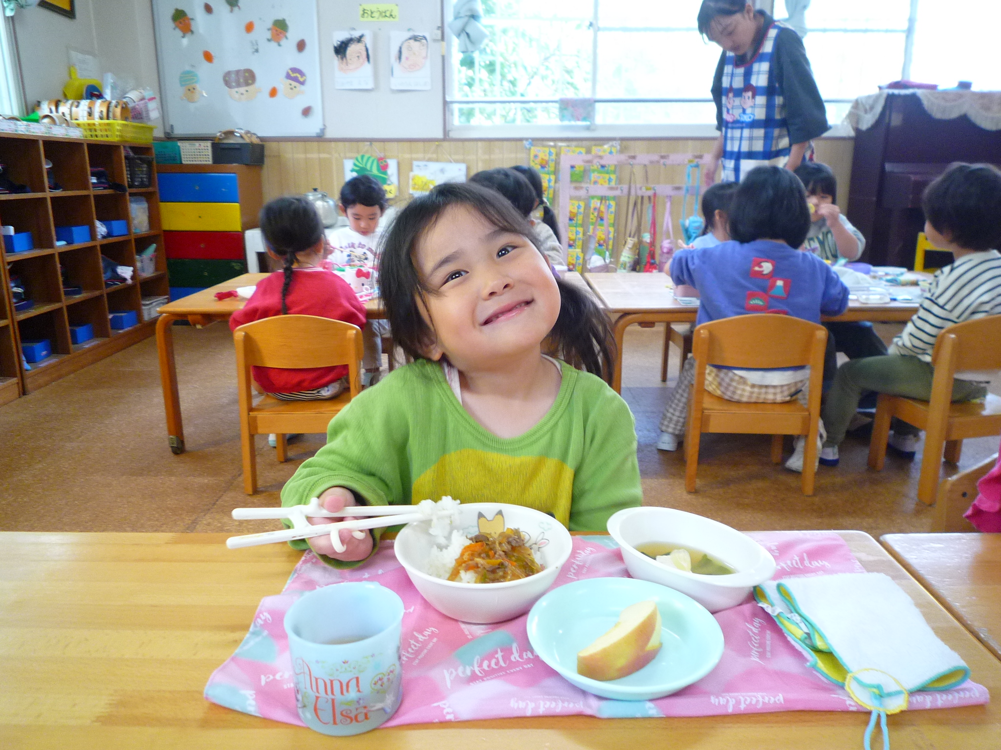今日の昼食です!お弁当の日は、いつもより早く「お腹がすいたよ♡」と教えてくれる子どもたちです(^^)/今日もとっても美味しかったね!