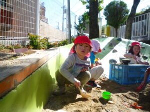 ご飯を食べた後はお外で沢山遊びました♡お天気が良く太陽の光を沢山浴びて元気いっぱい遊びました(^▽^)/