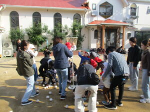 朝の礼拝をして玉入れをして、元気いっぱいの子どもたちでした✨