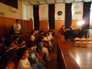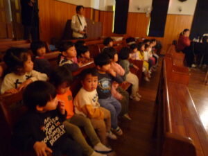 今日は年長組のクリスマス会予行練習がありました(^^♪初めて見るページェントに釘つげの子どもたちでした♡途中お歌で参加しました♬終わった後は「かっこよかったね」ととっても良い刺激になったように思います(^_^)/~