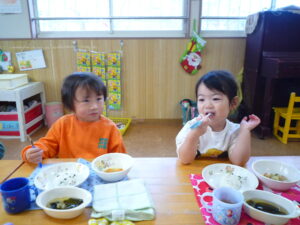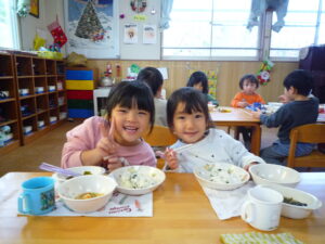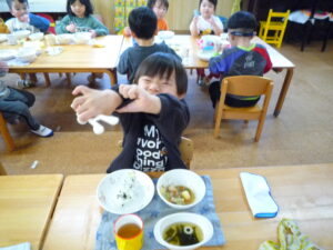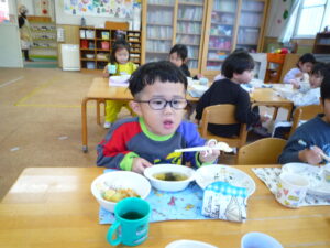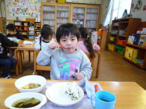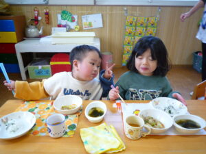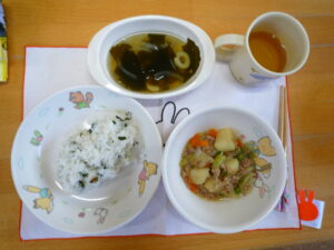 今日の給食はごはん・すまし汁・そぼろ味噌煮でした(^_^)/~美味しかったね♡
