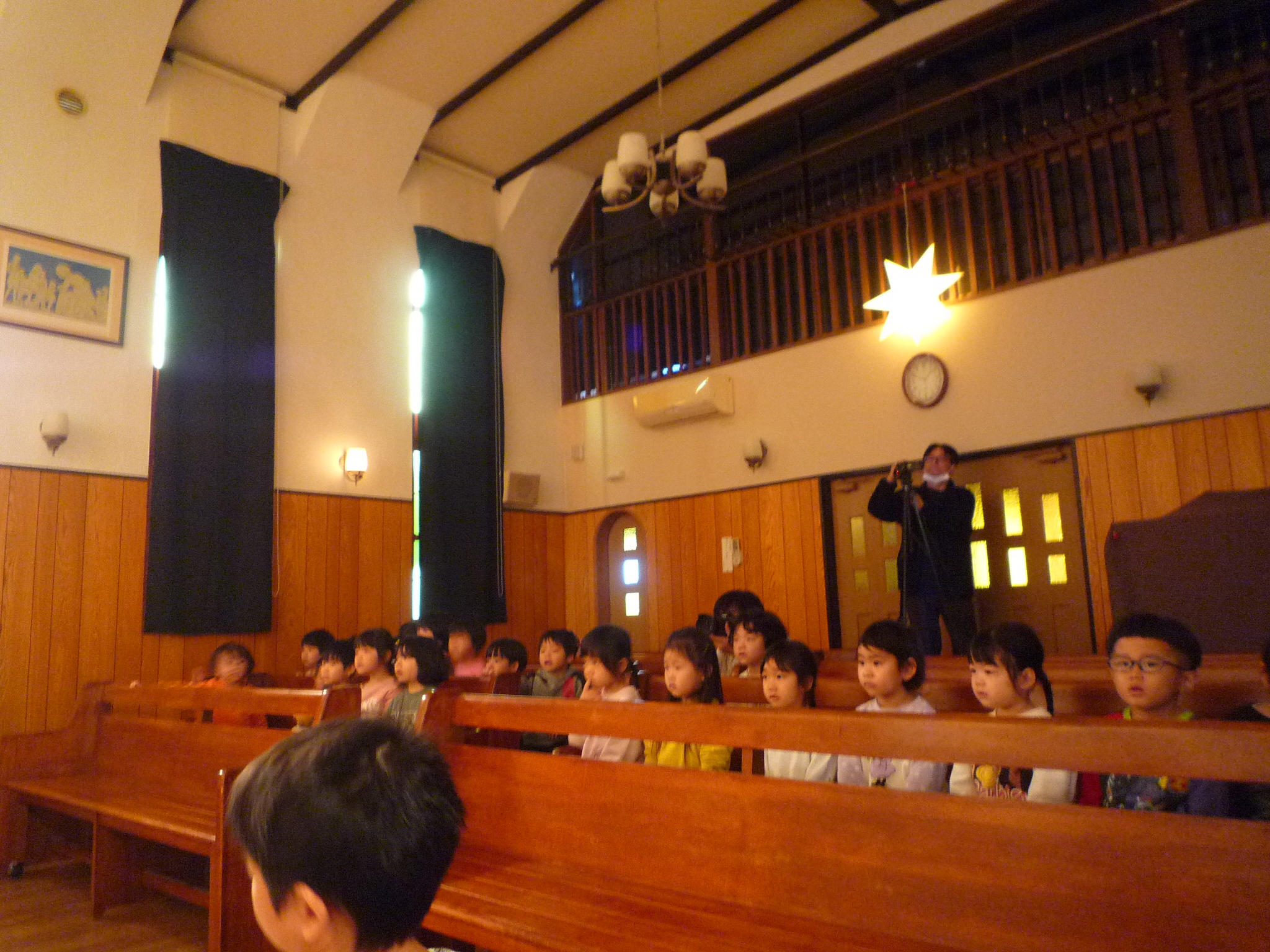 今日は年長組のクリスマス会予行練習がありました(^^♪初めて見るページェントに釘つげの子どもたちでした♡途中お歌で参加しました♬終わった後は「かっこよかったね」ととっても良い刺激になったように思います(^_^)/~