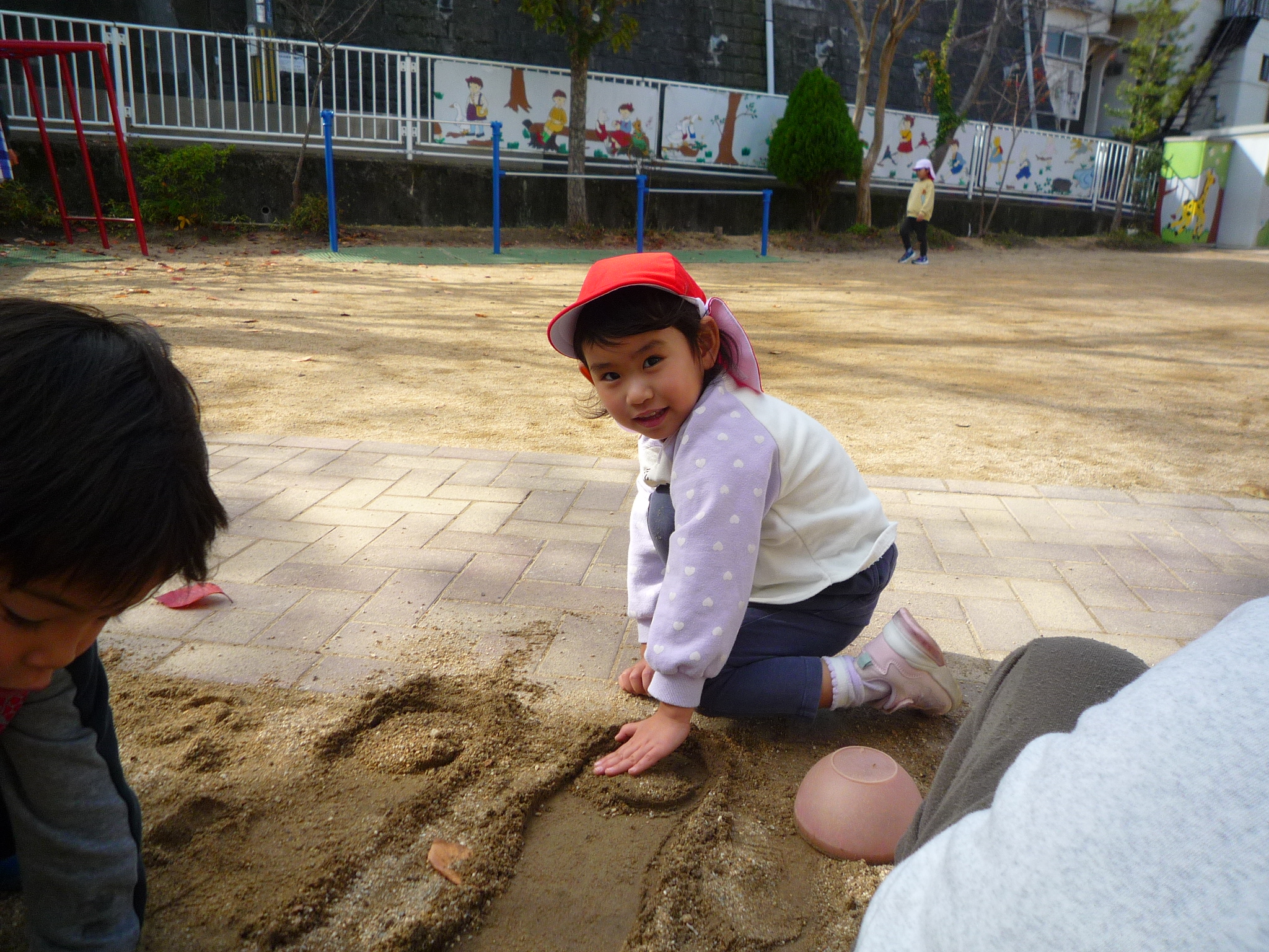 予行練習の後はお外で元気いっぱい遊びました♡お空に飛ぶ飛行機を見たり、お砂でお料理を作ったりお友だちと楽しく遊ぶ姿が見られました(^^♪