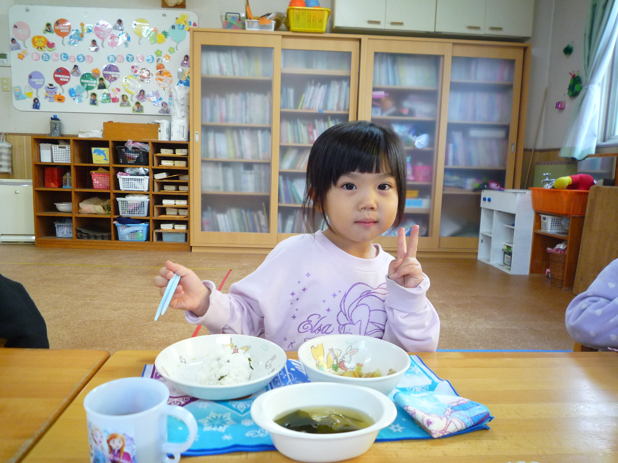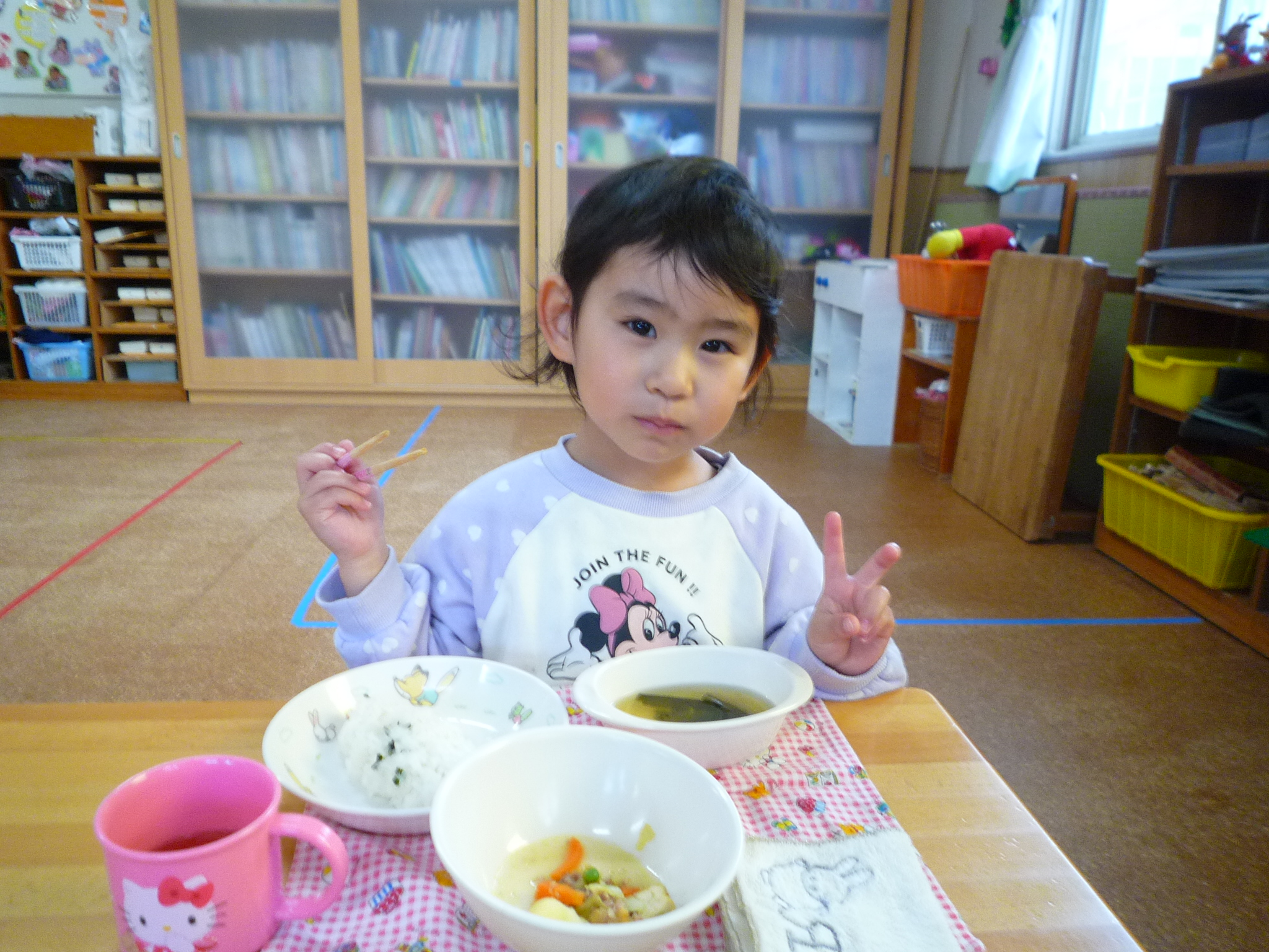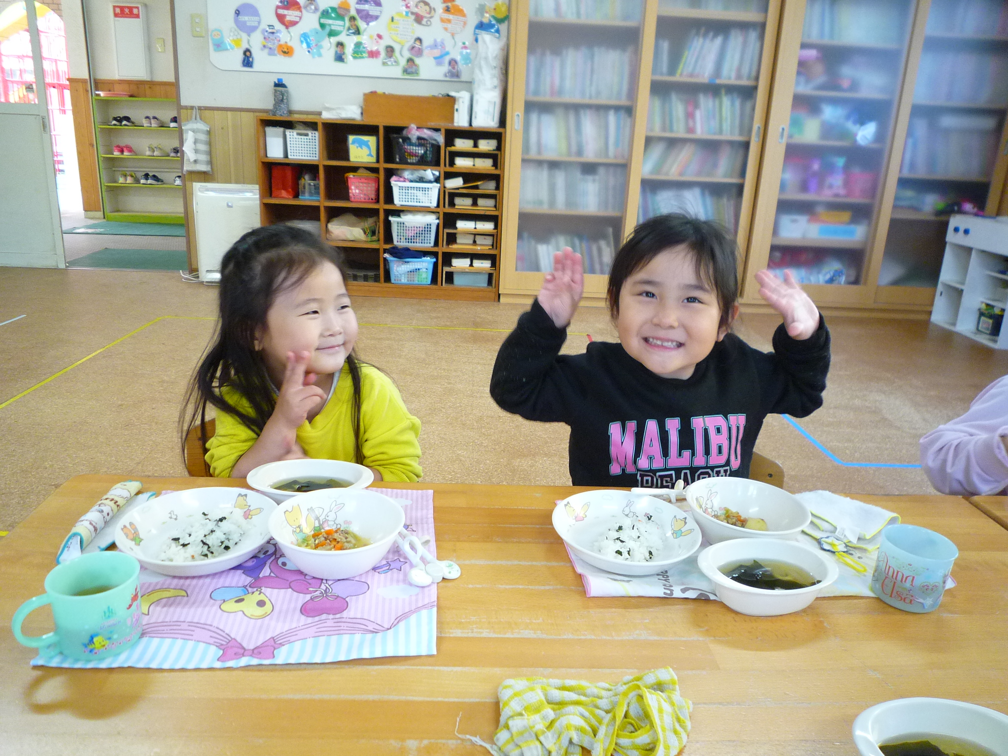 今日の給食はごはん・すまし汁・そぼろ味噌煮でした(^_^)/~美味しかったね♡