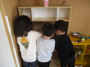 また、今月から新しいお友だちも増え、より一層賑やかになり、みんなで仲良く遊んでいます♬ 「お祈りはこうやってするんだよ」などとお手本を見せながら教えている姿も見られます💓