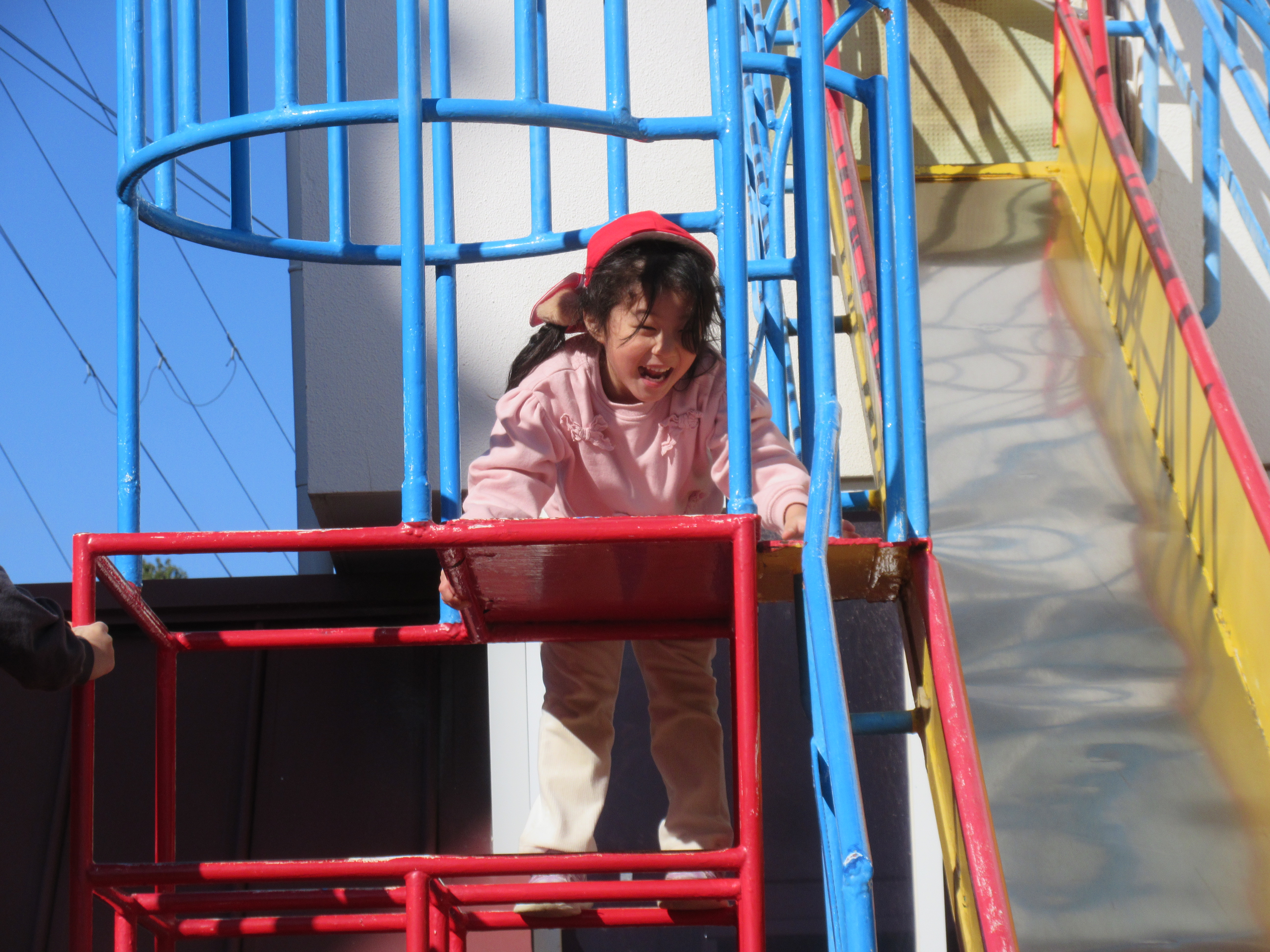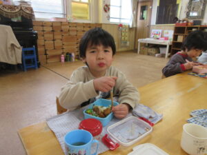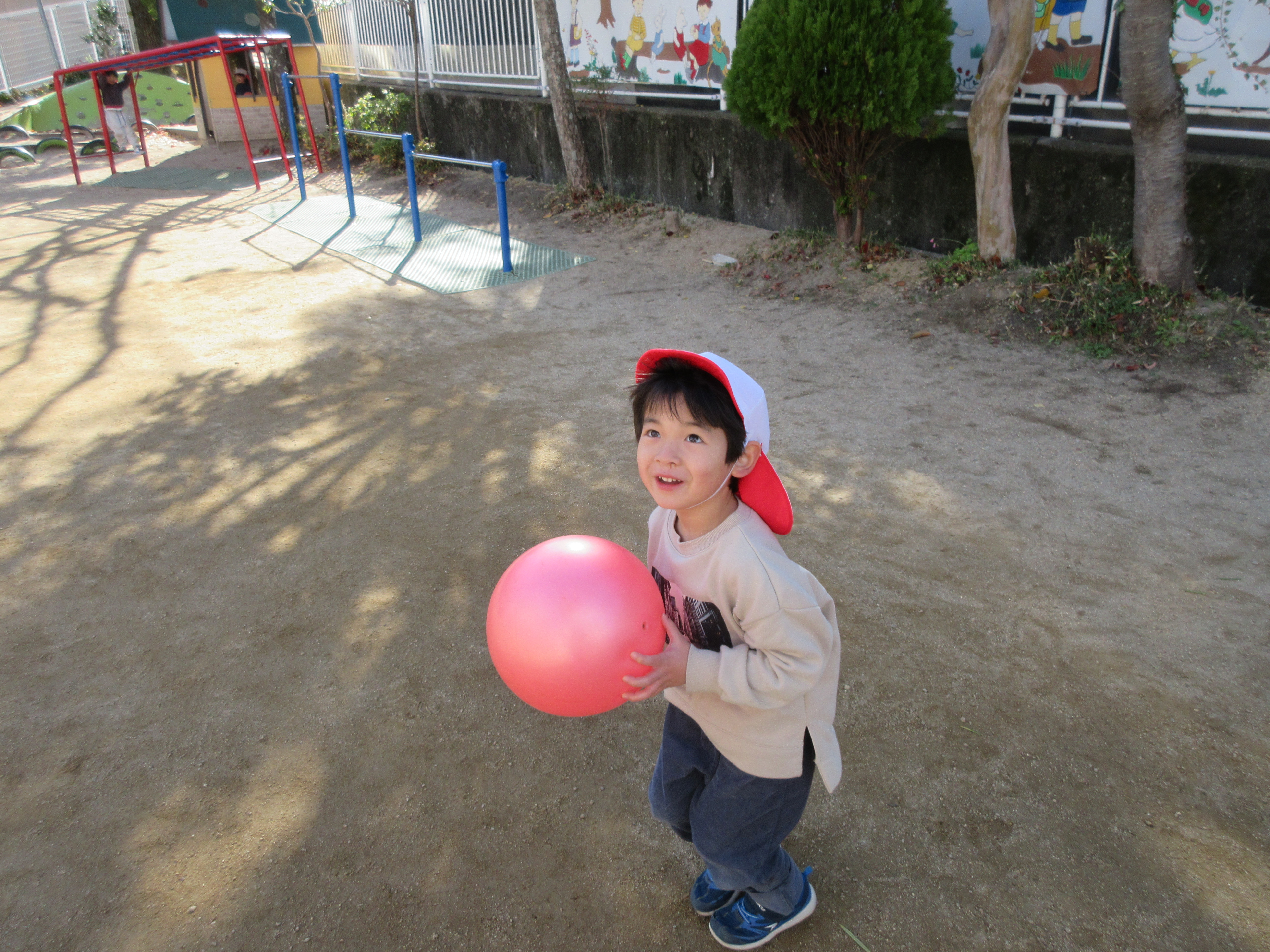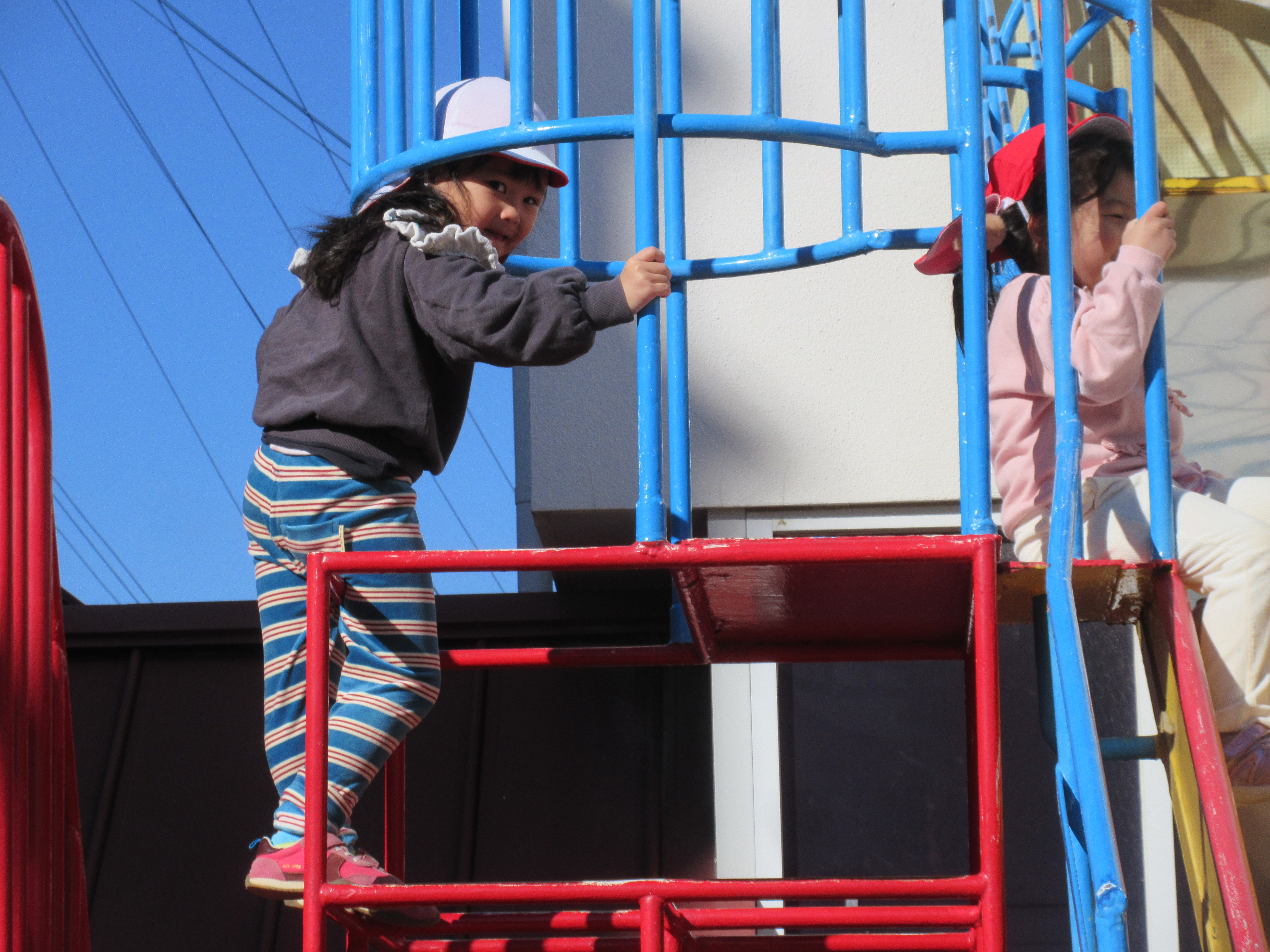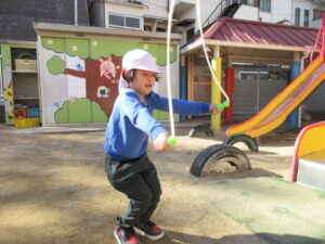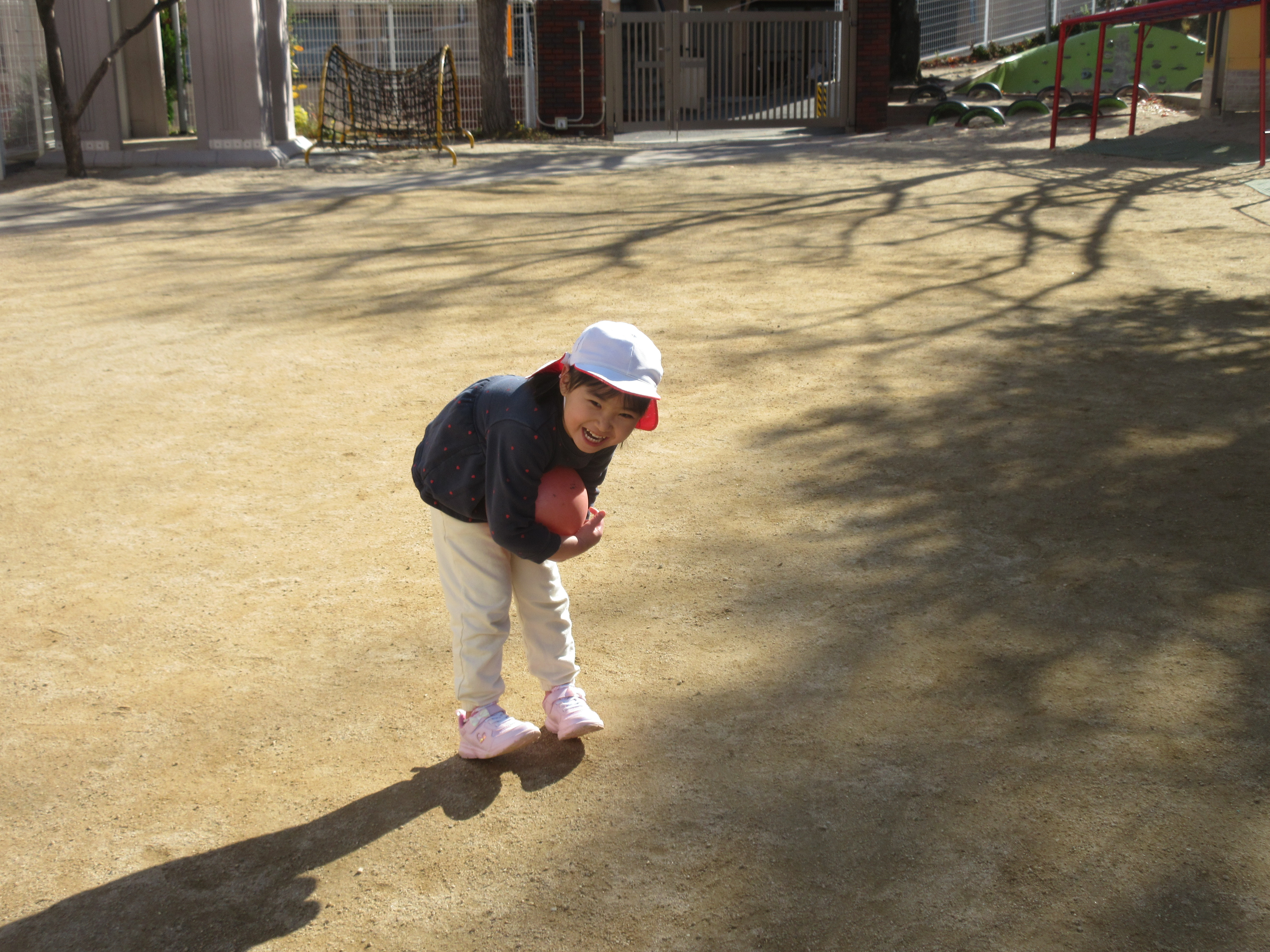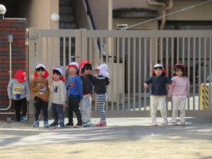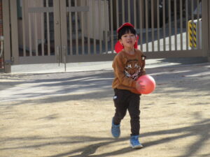 今日は寒さが一段と強い1日でした🥶そんな中でも元気に外で遊ぶ子どもたちです。今日はみんなで最後にだるまさんが転んだをしました。振り返るたびに急いで進み変なポーズの子もいれば、少しずつ進む慎重な子など様々な姿が見られました。